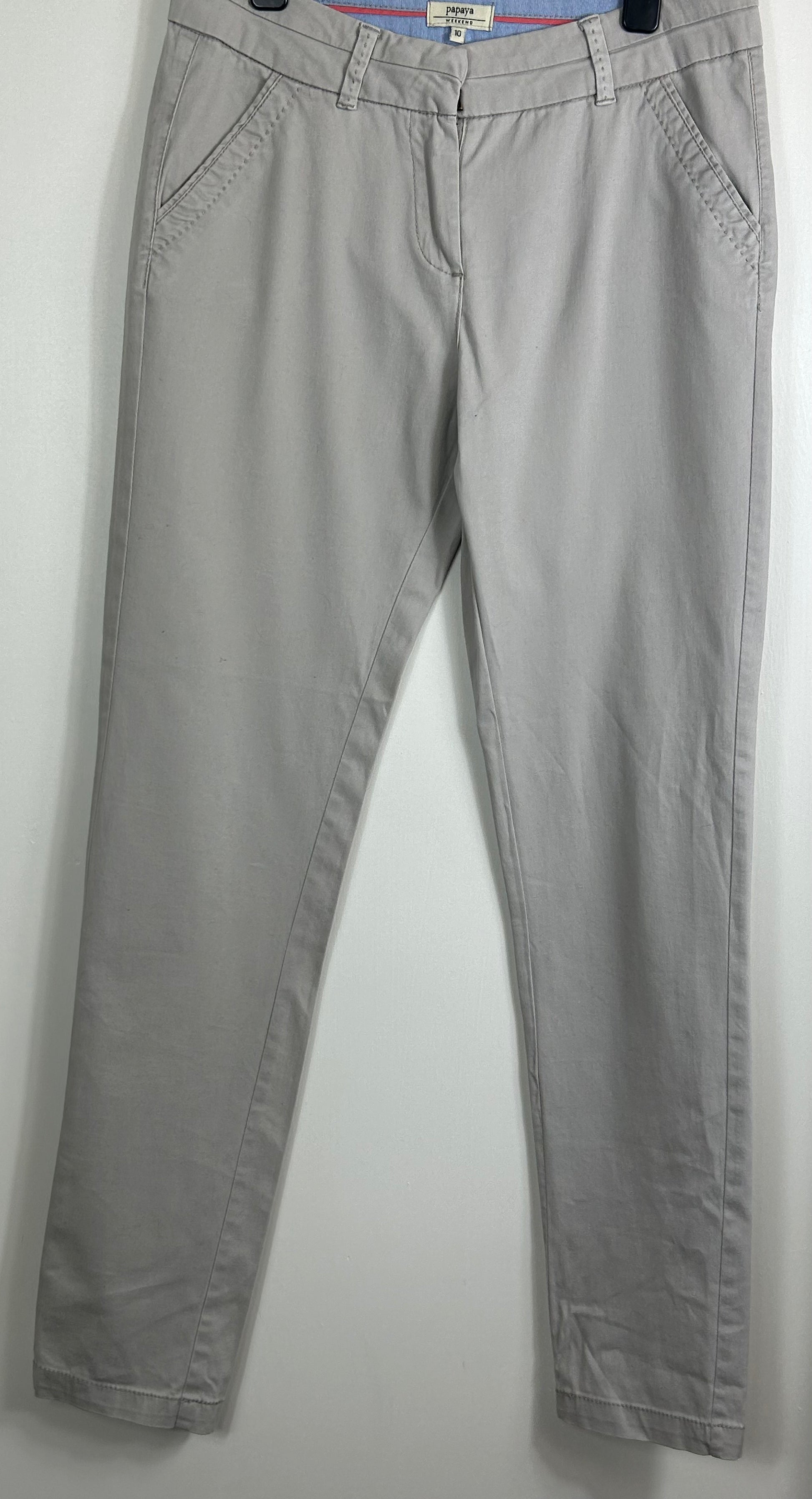 Ladies Beige Cotton Trousers. Two side pockets, zip front, straight leg