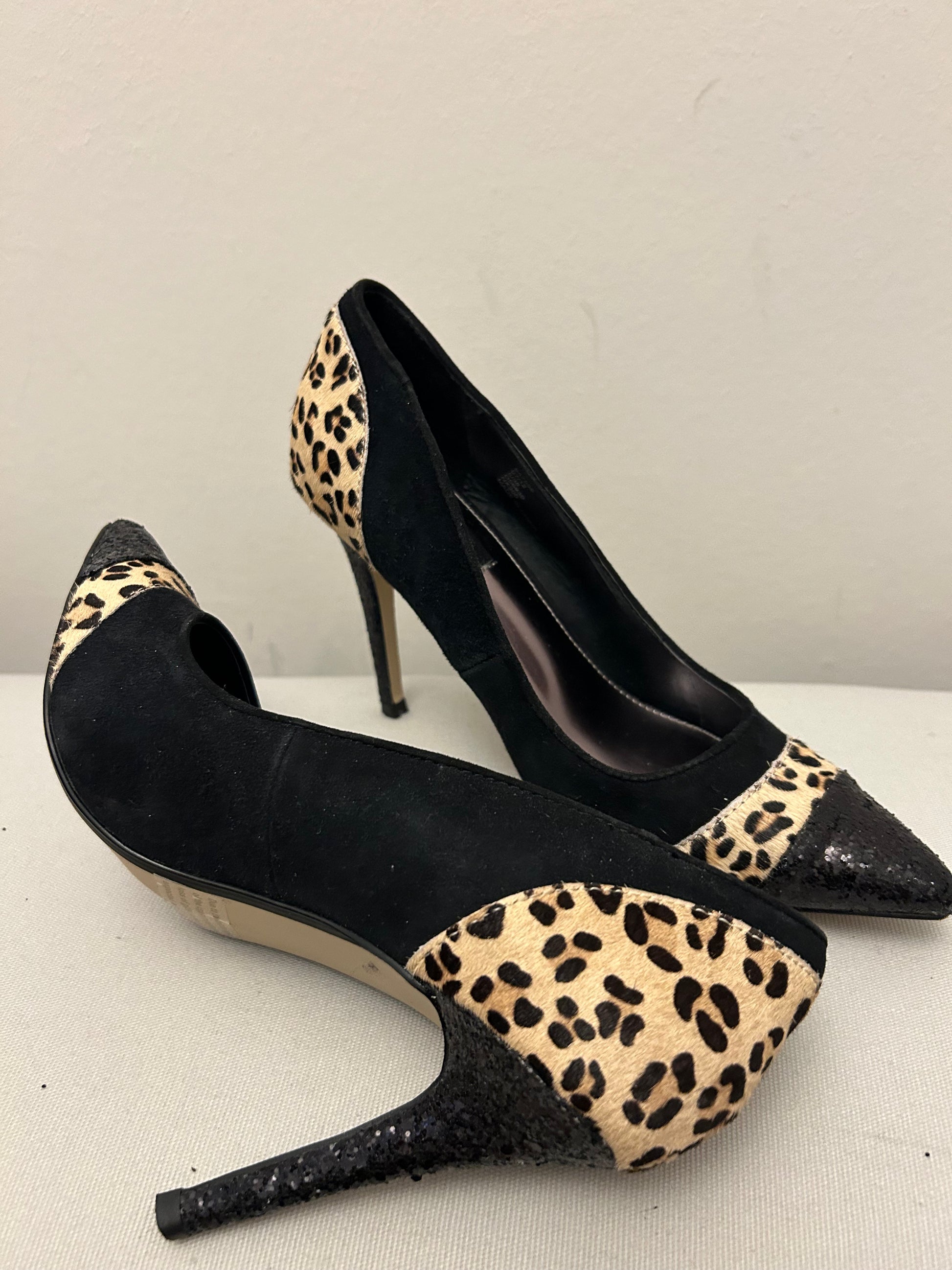 Black & Animal Print Next Stiletto Shoes. Stiletto heels. Animal print on heel & front. Sparkly toe area