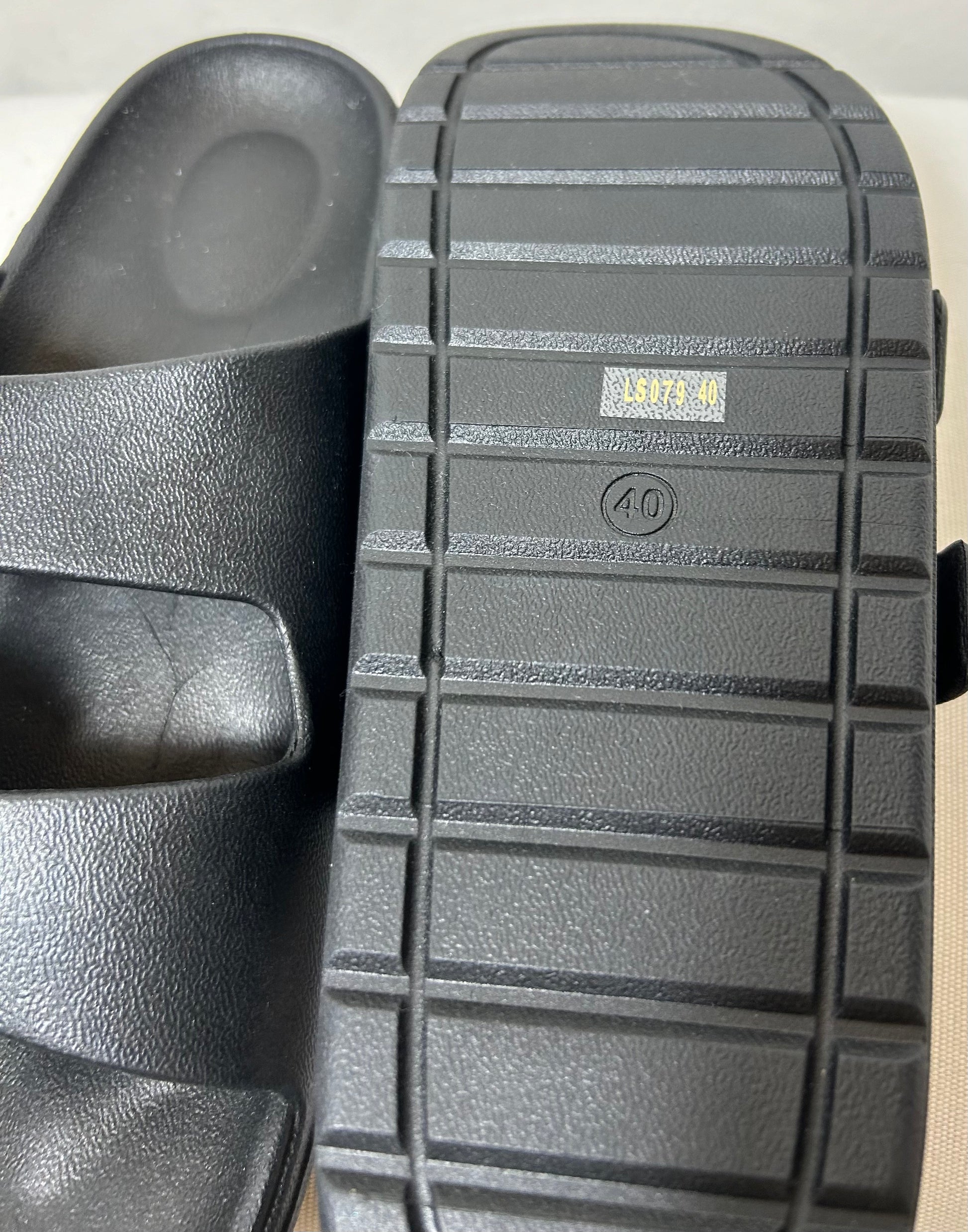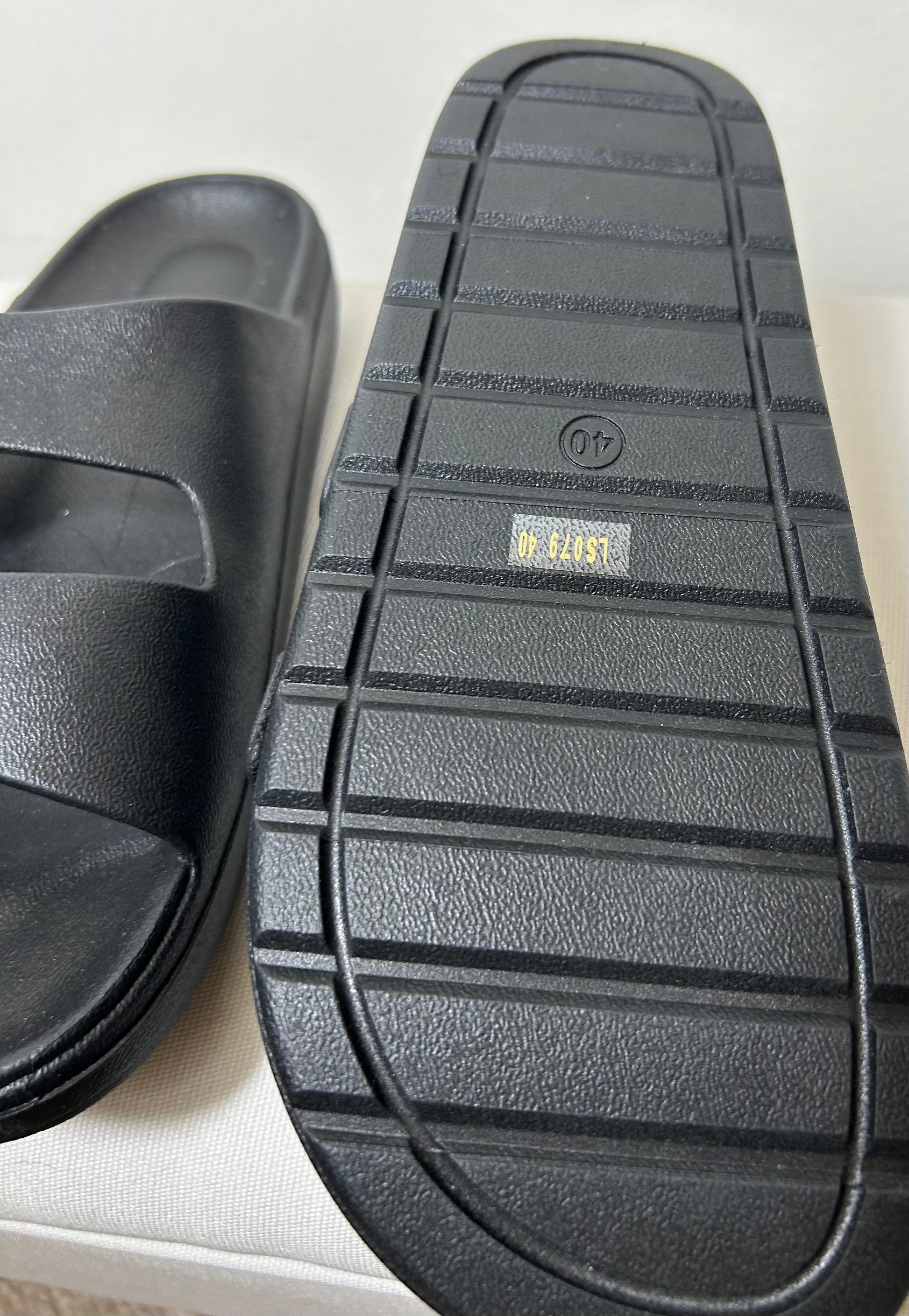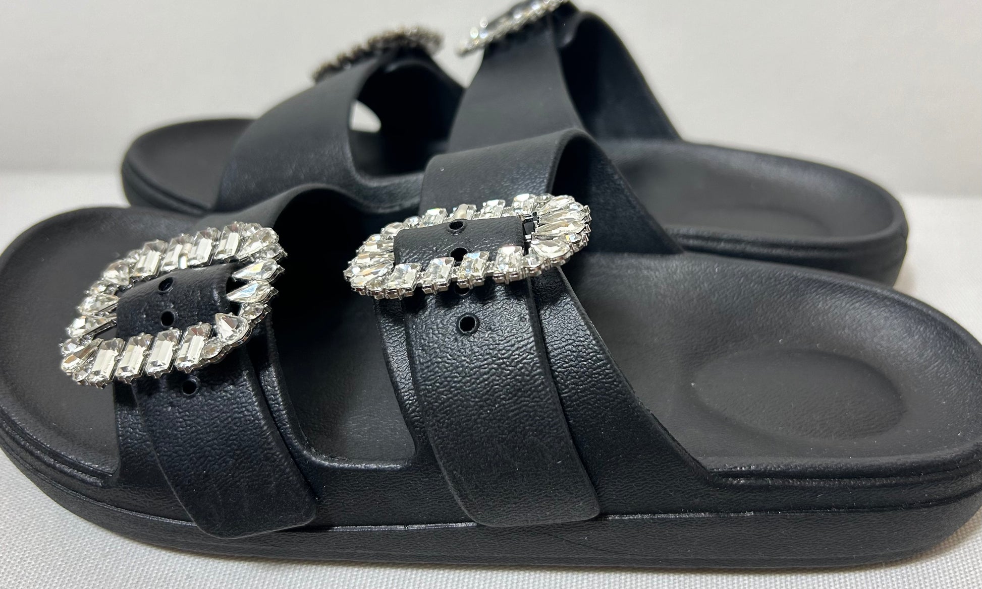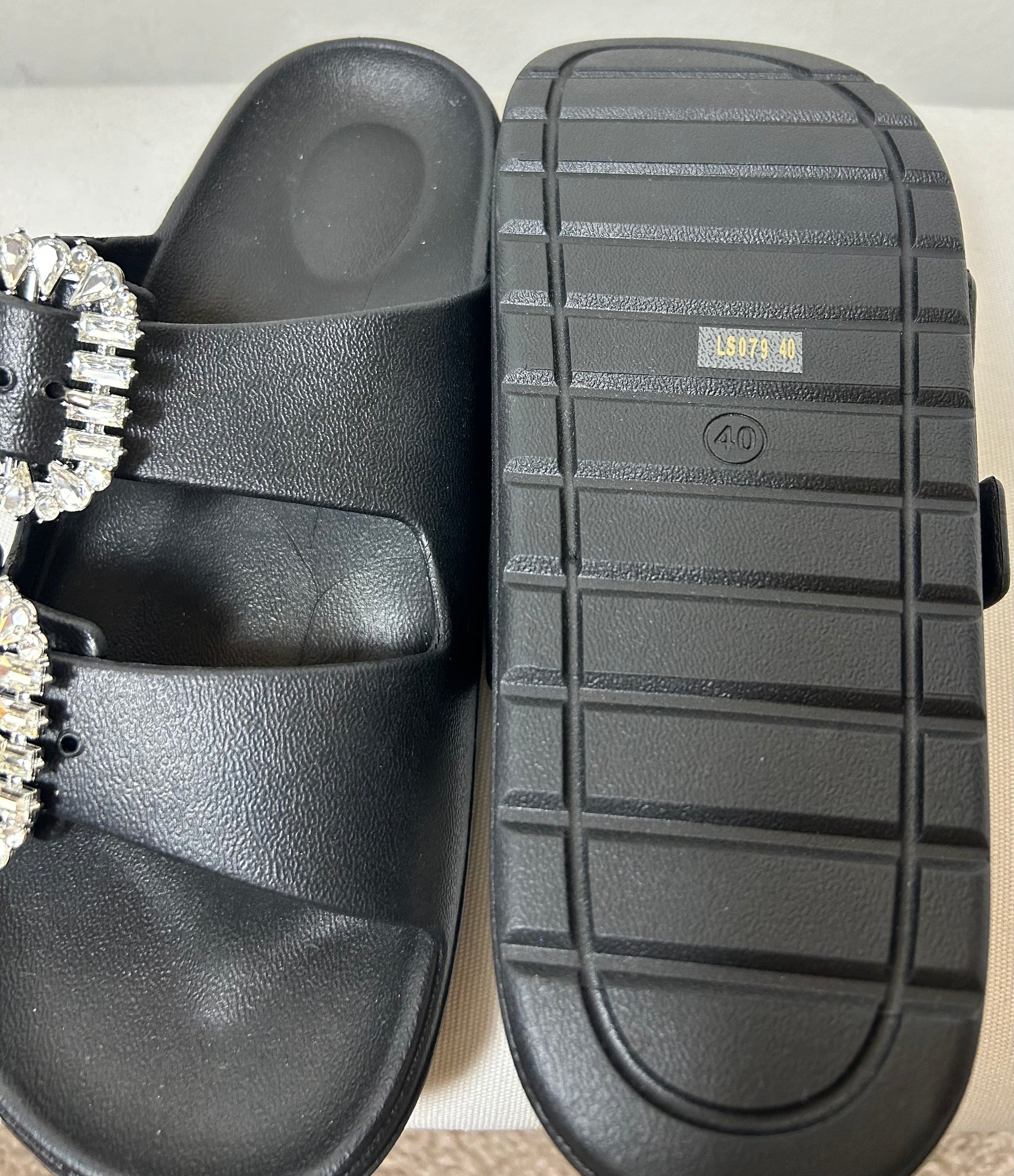 Black Sandals With Two wide strap on front with large silver diamanté buckles