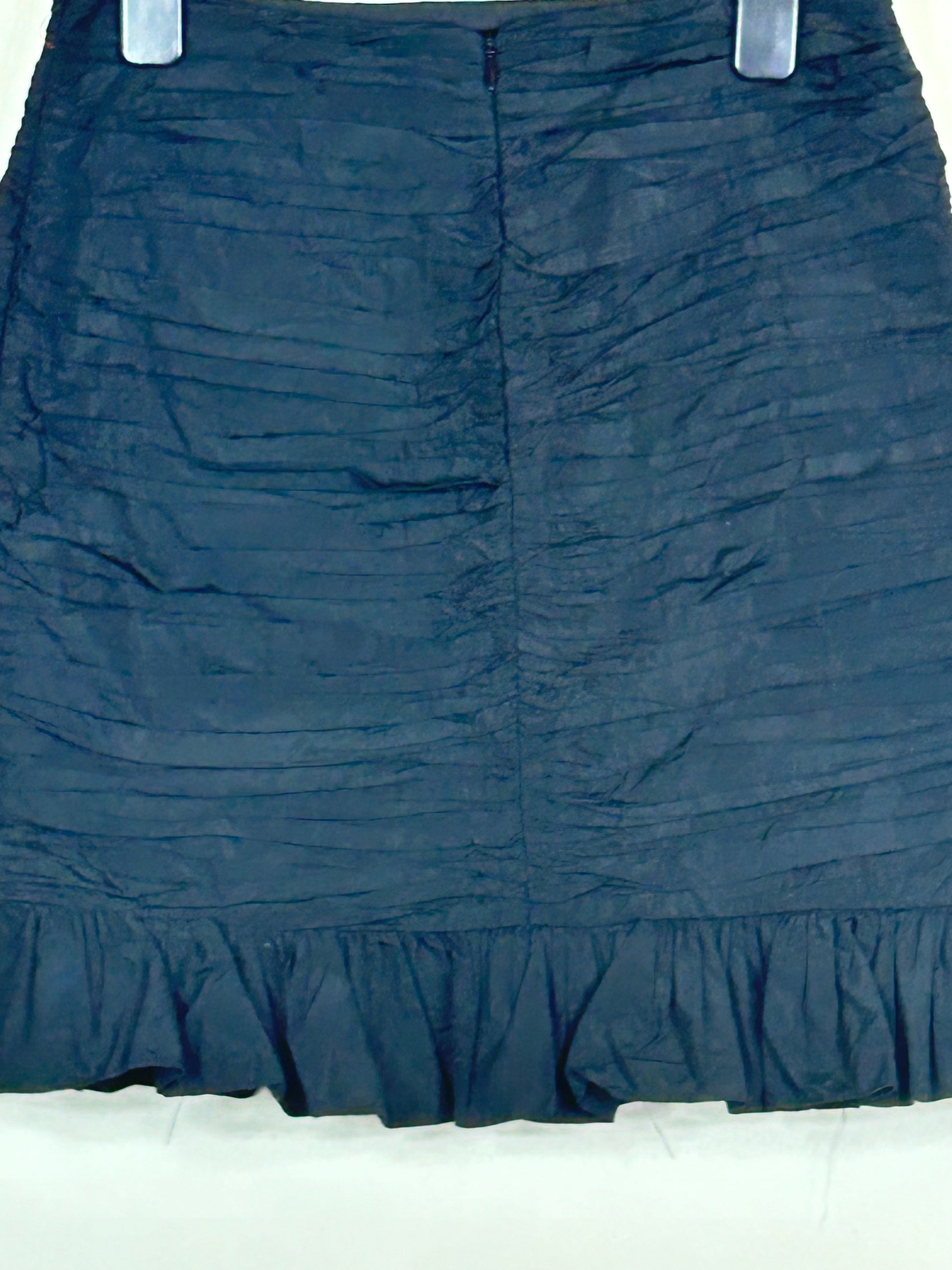 Black Short Zara Skirt.Hemline frill, creased fabric, zip back fastening