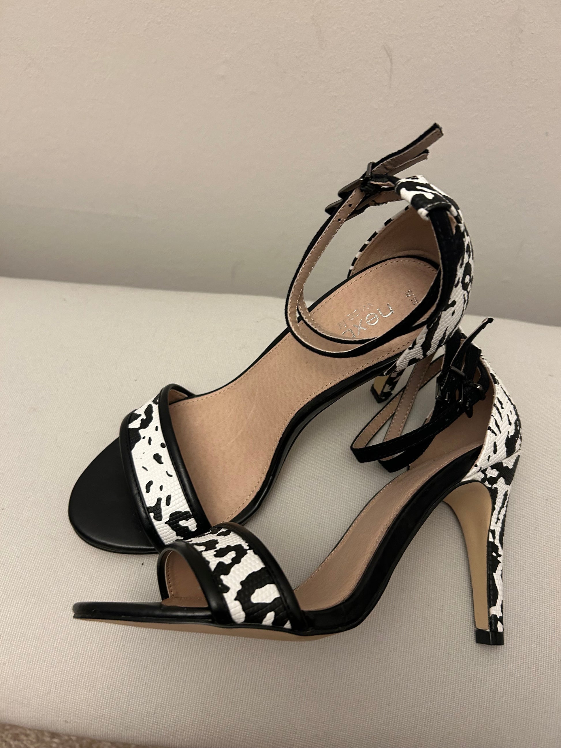 Black & White Next Sandals. Animal print with ankle straps and open toes
