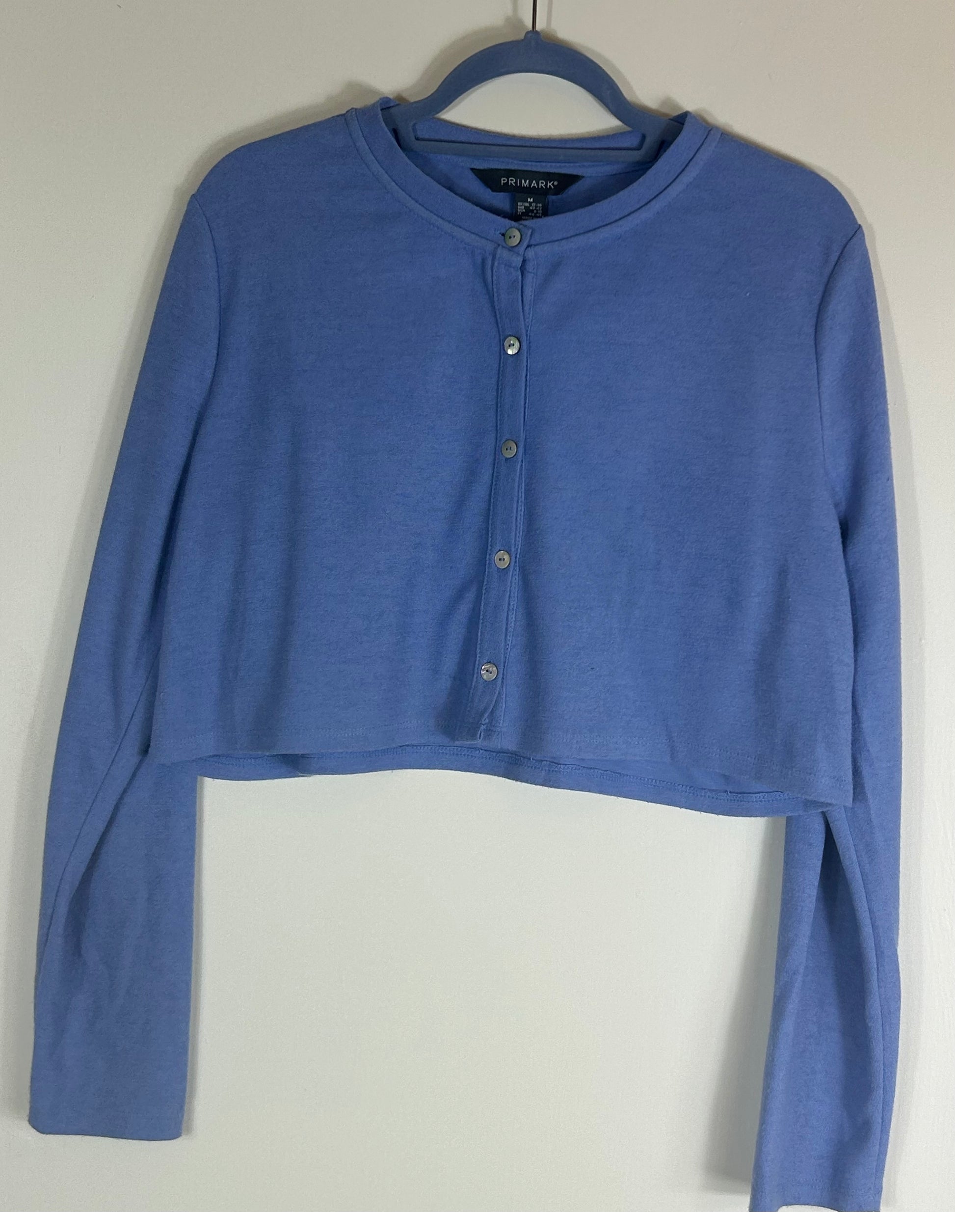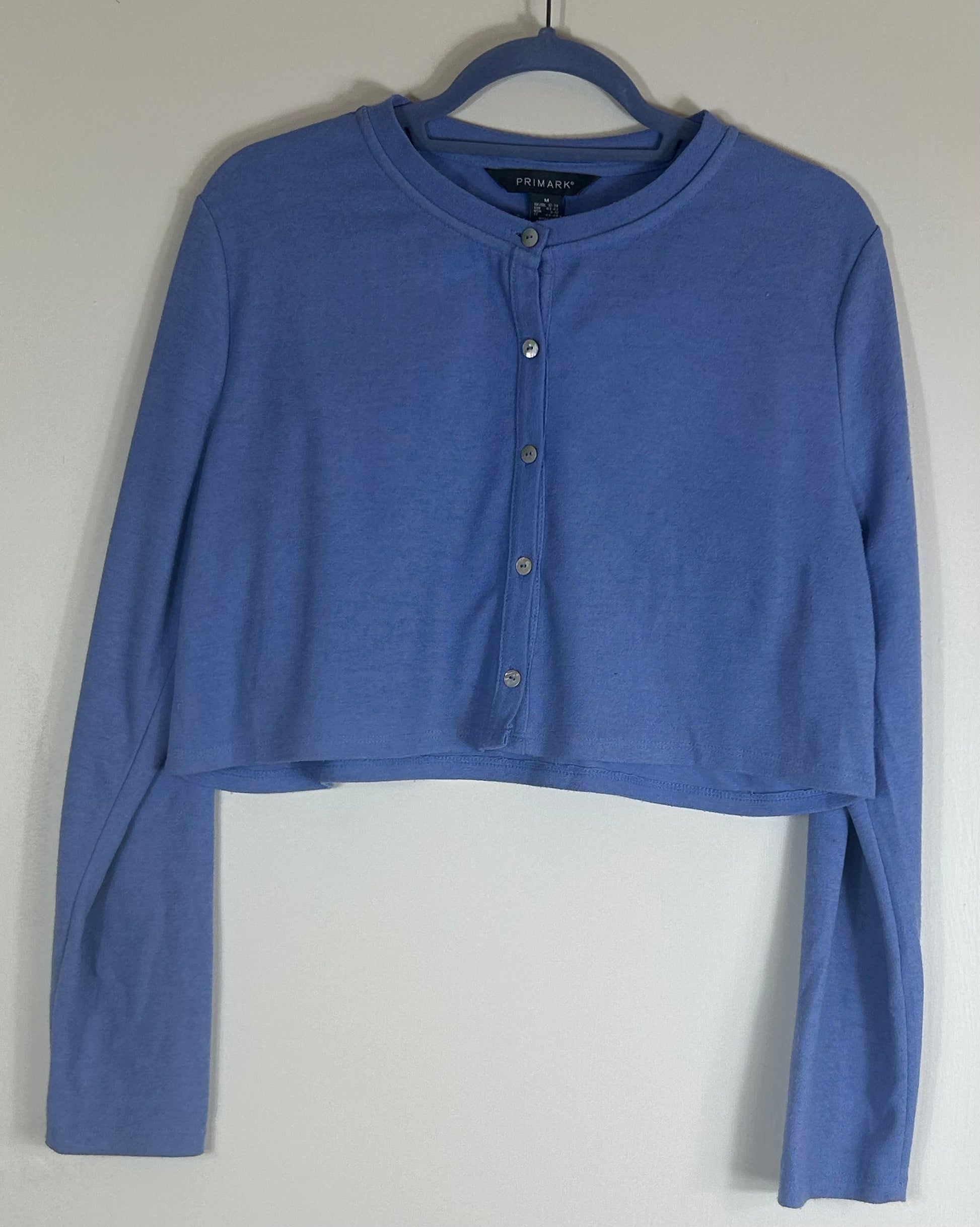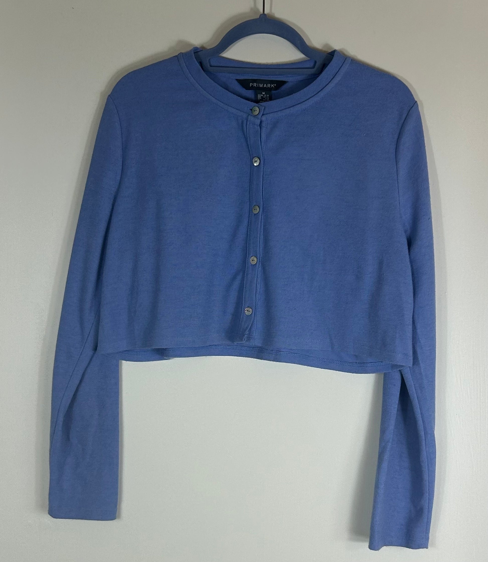 Blue PRIMARK Short Cardigan. Button Front. Round Neck.