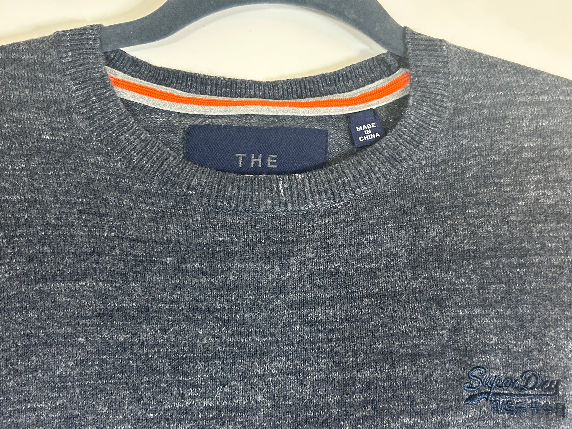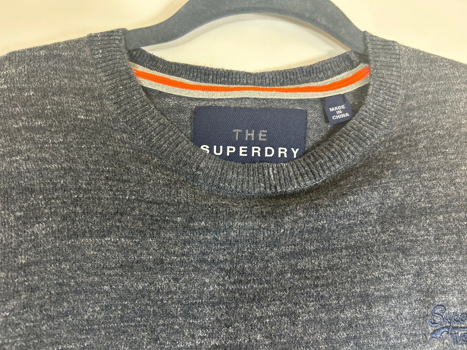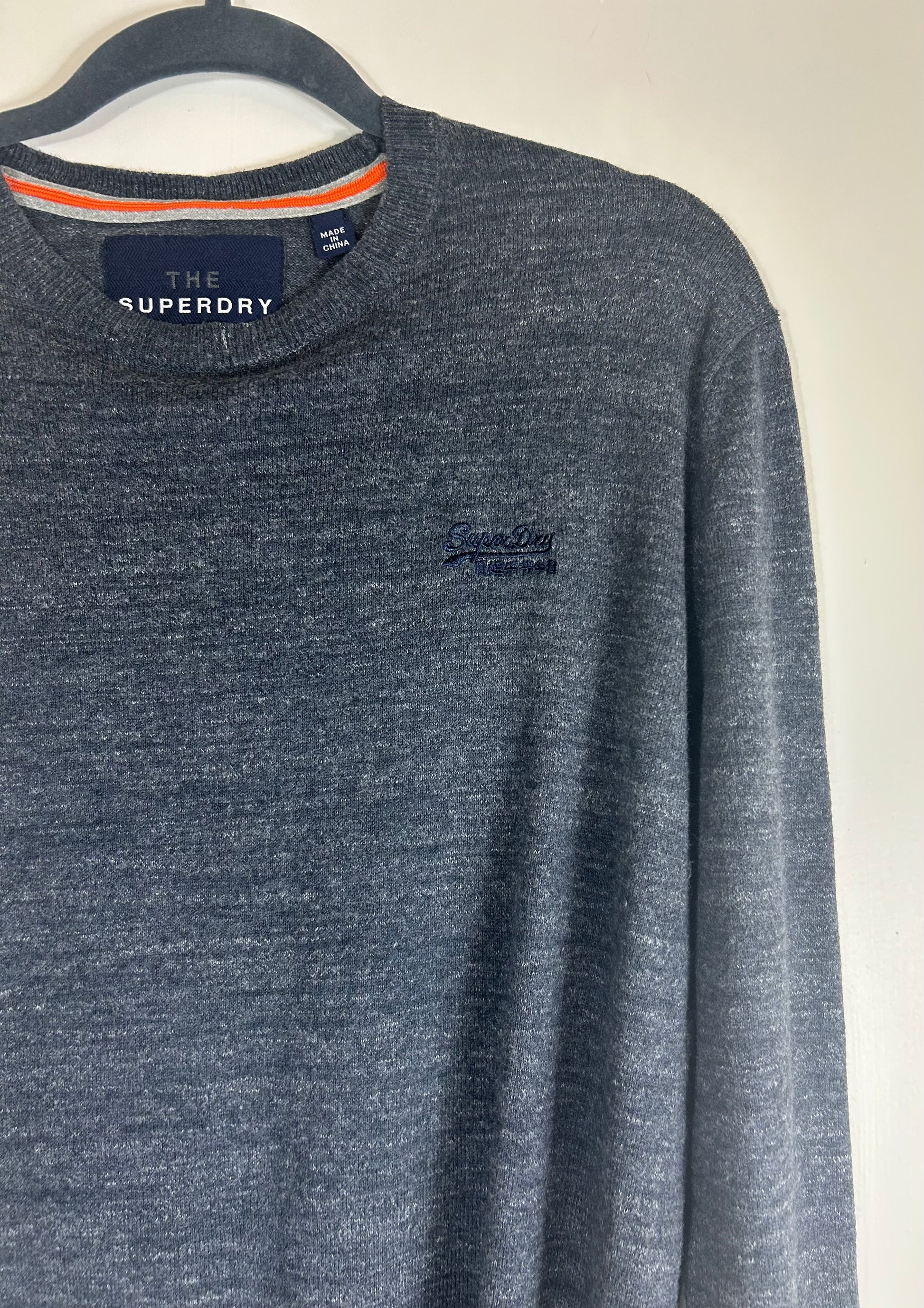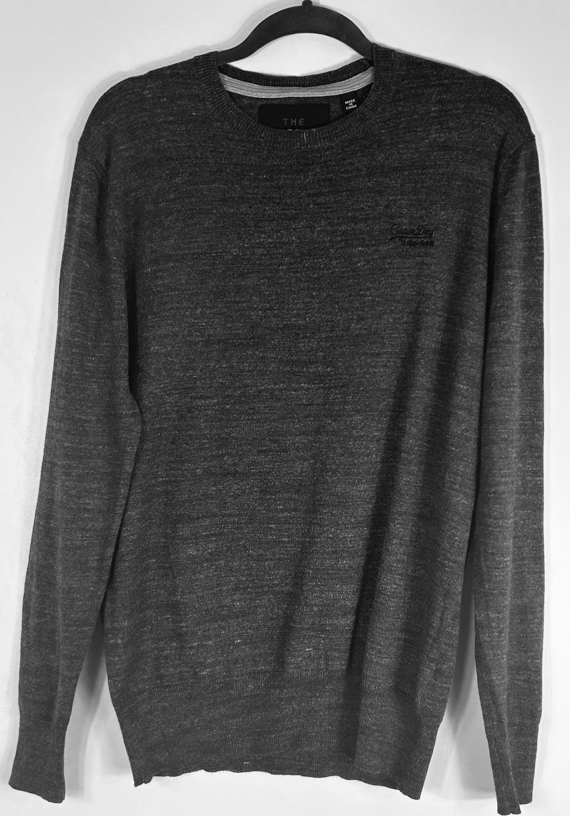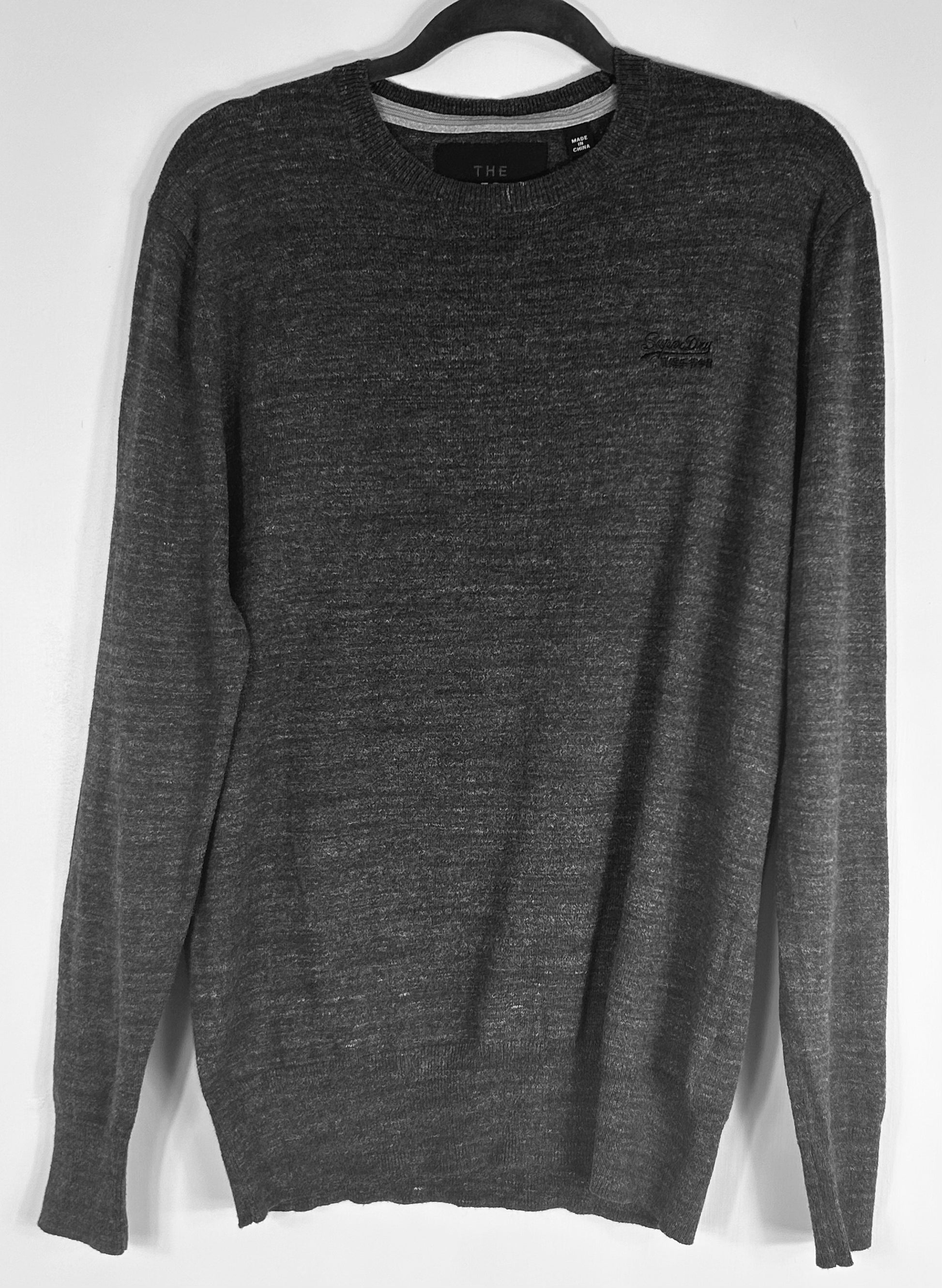 Grey Superdry Premium Knitwear Company Sweater. Crew Neck. Fine knit.