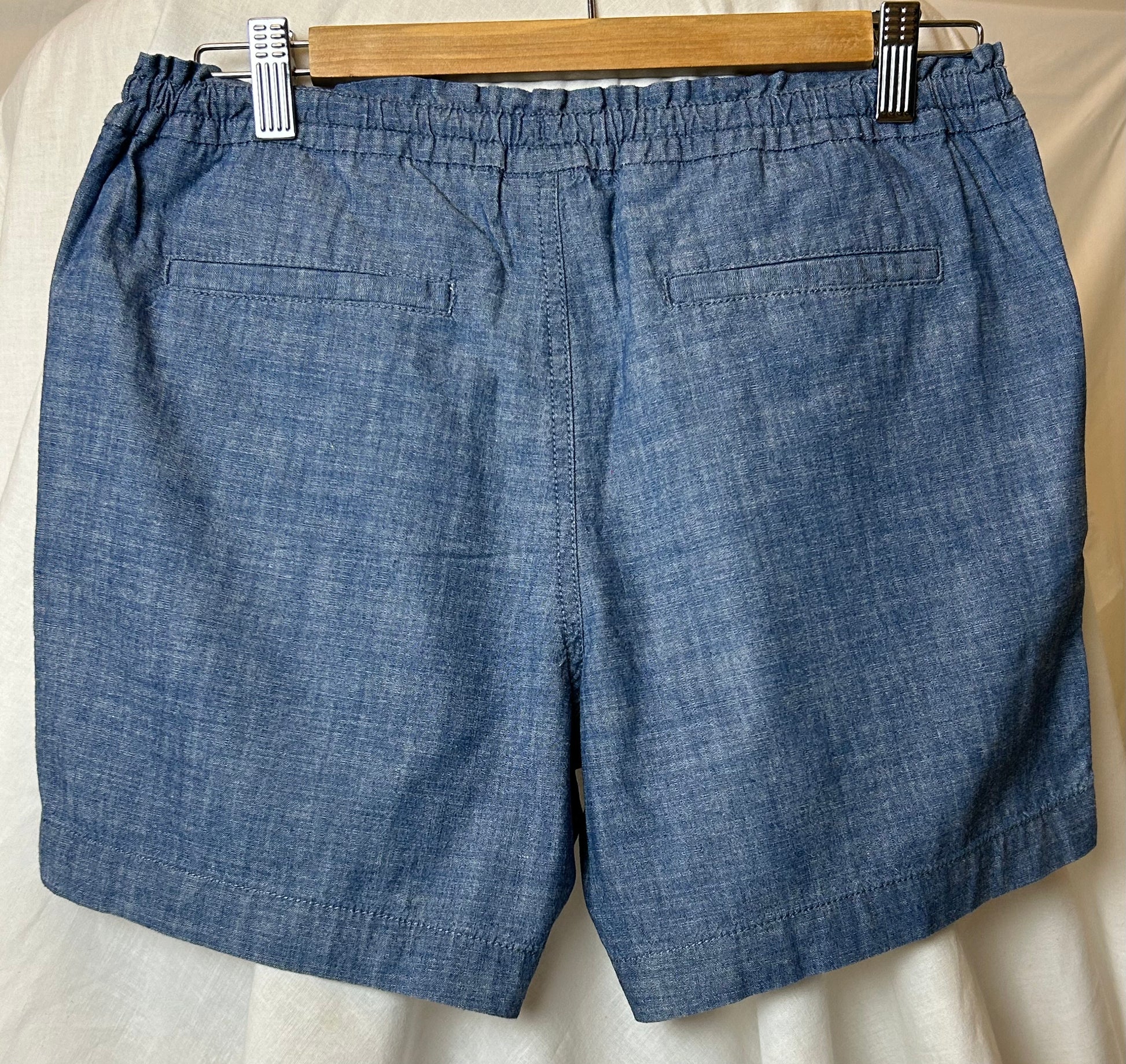 Ladies light weight cotton denim shorts. Draw string waist, two side pockets, two back pockets