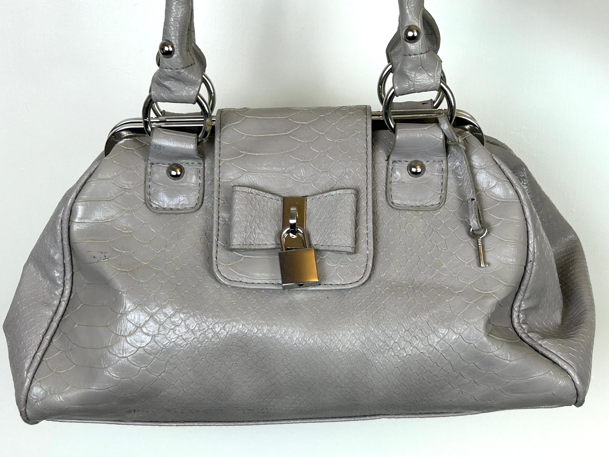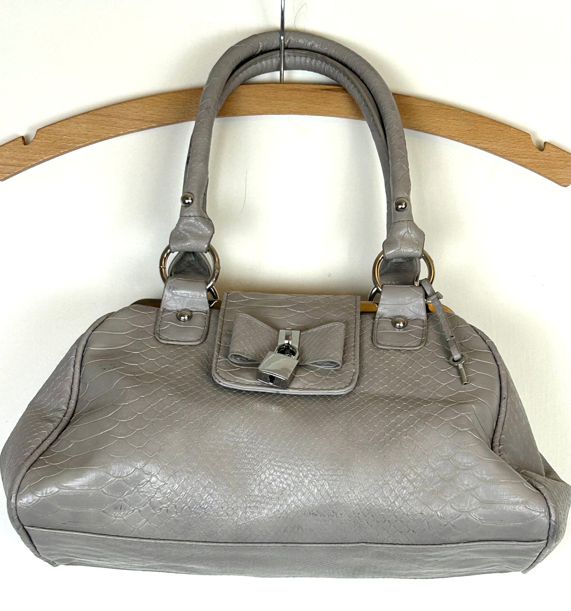 Light grey handbag with pale grey lining. Internal zip pocket plus small pocket.