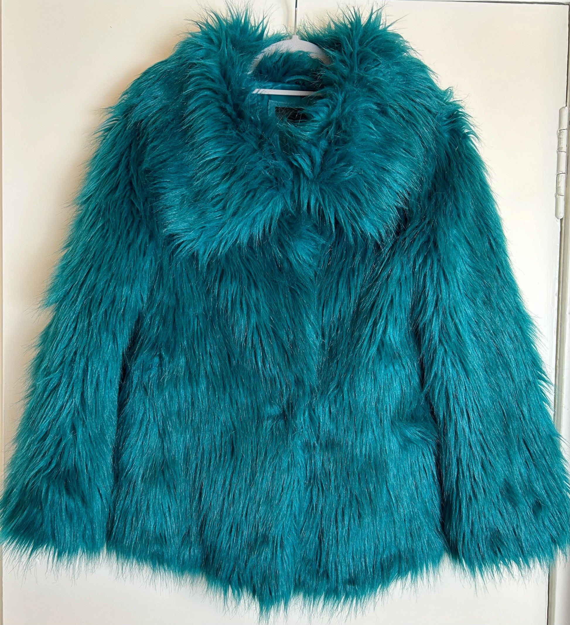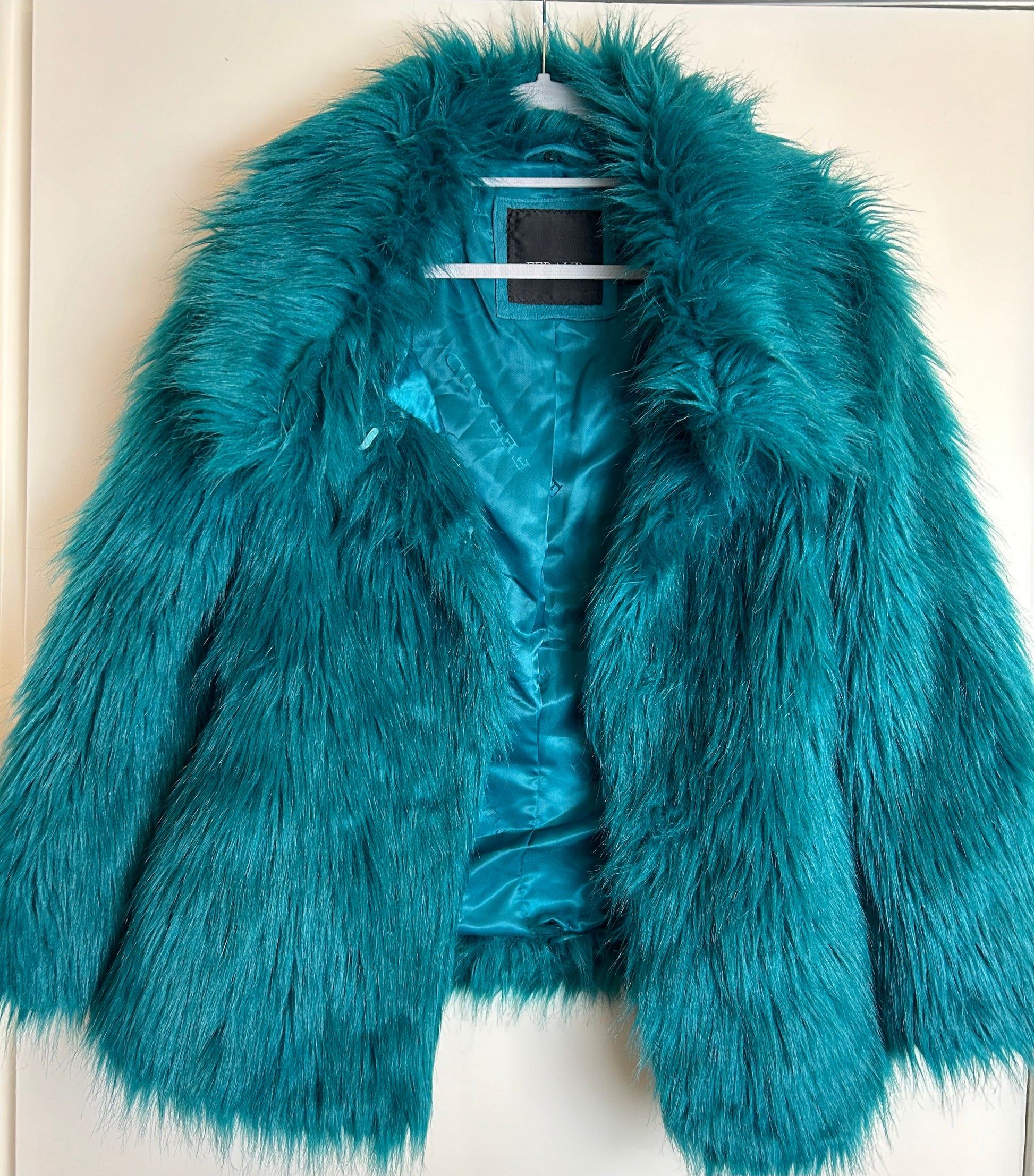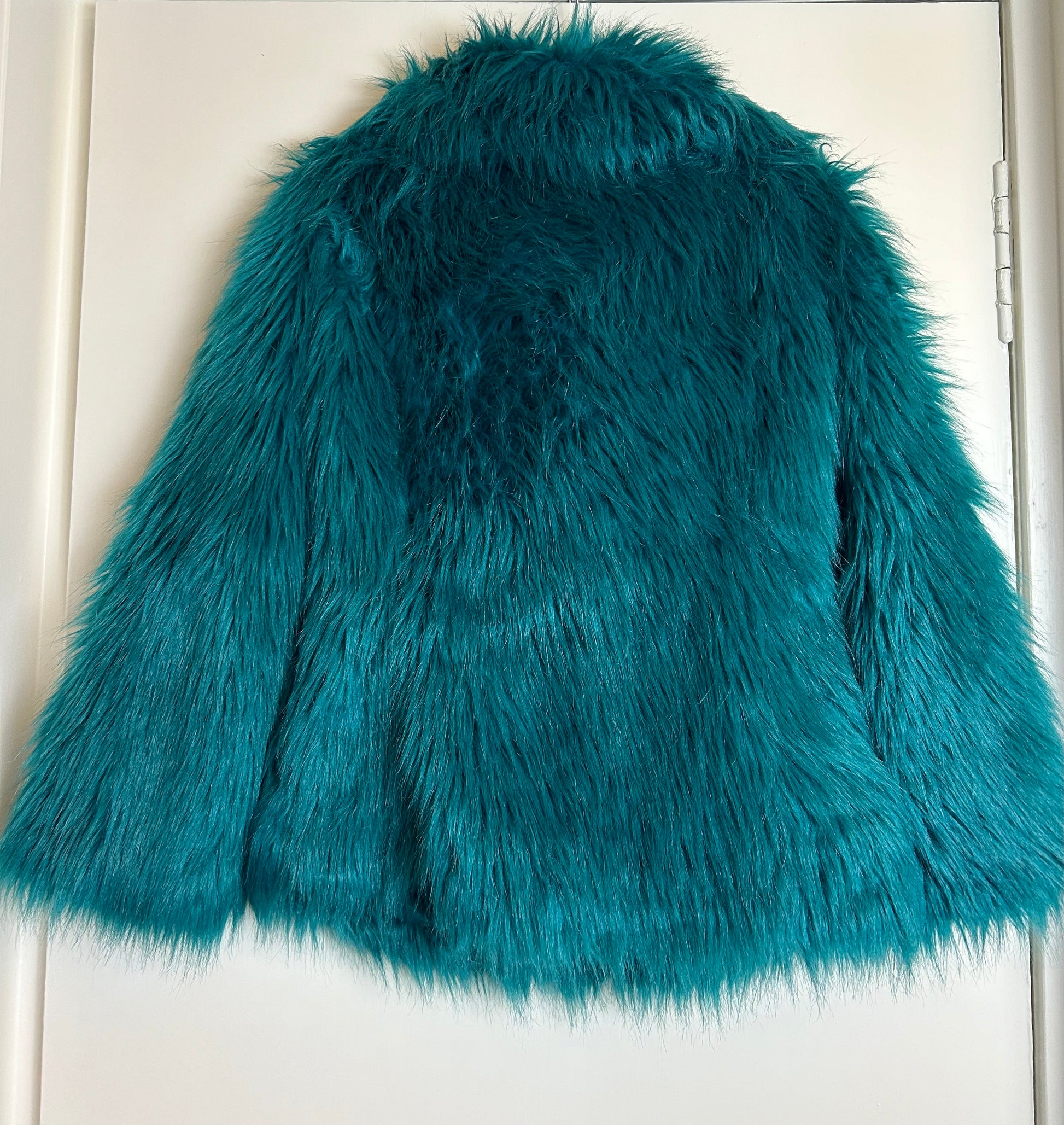 Ladies faux fur Turquoise jacket. Fully lined. Two side pockets
