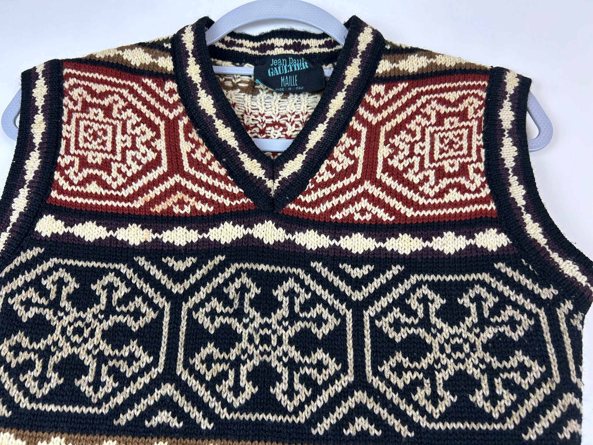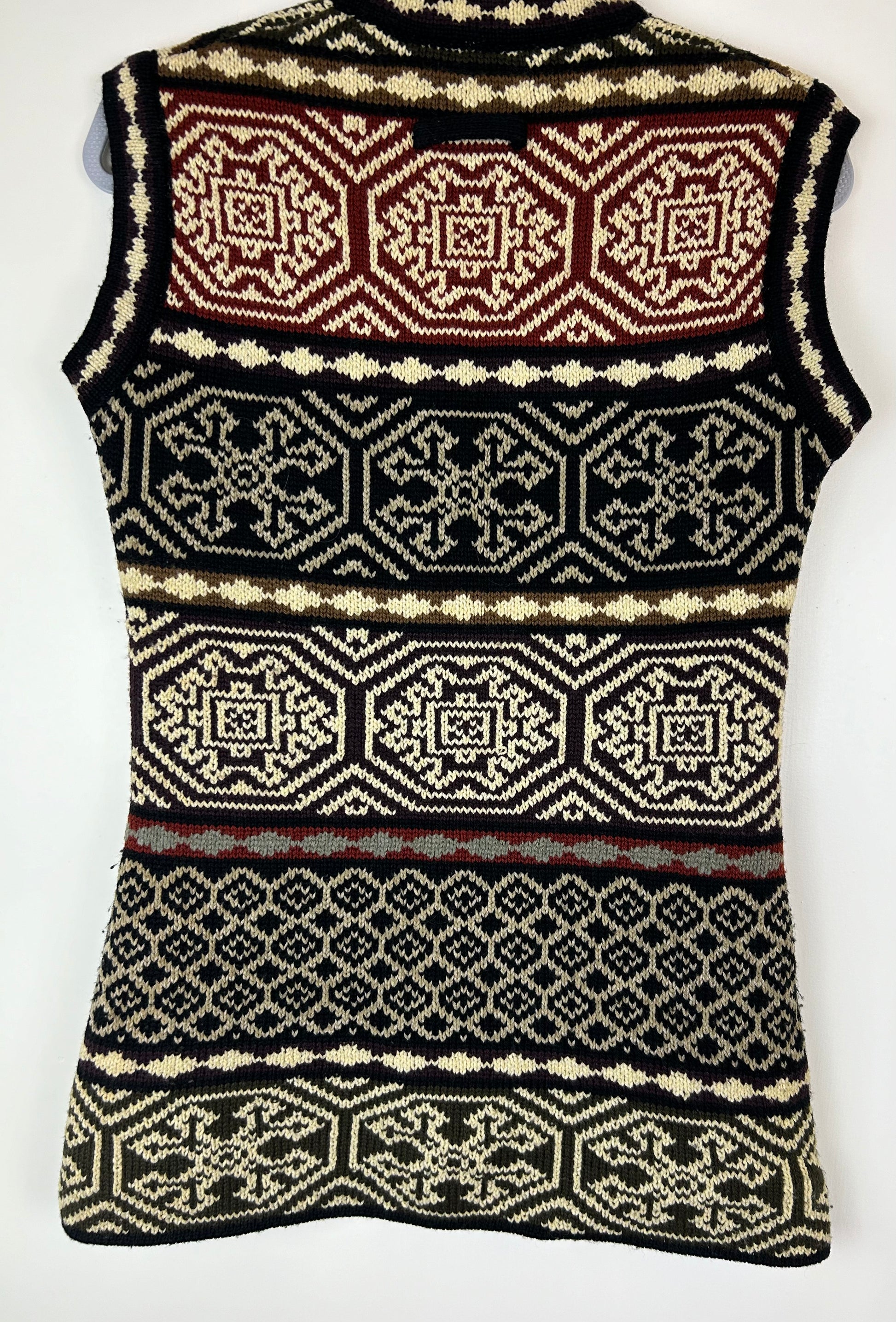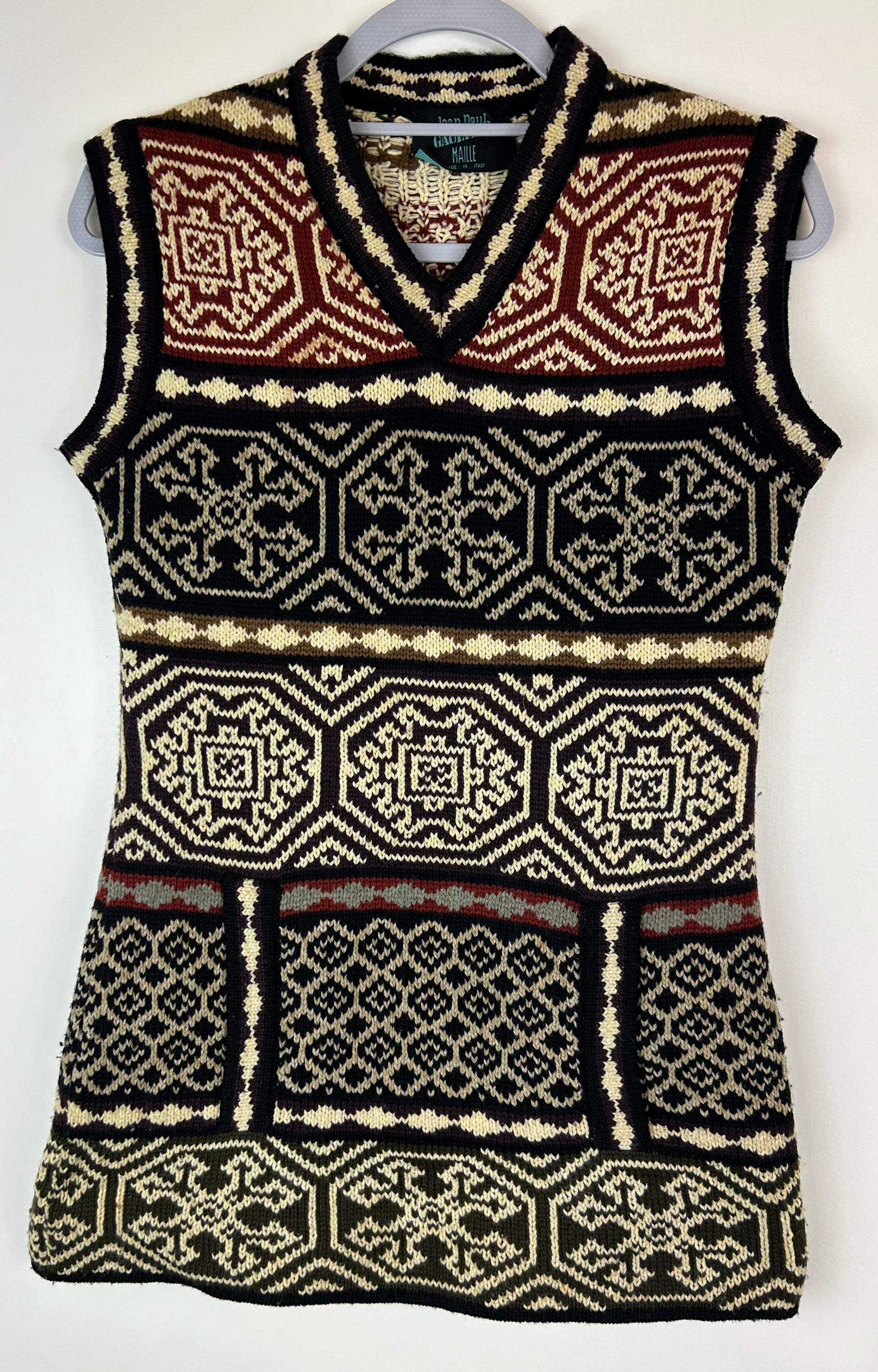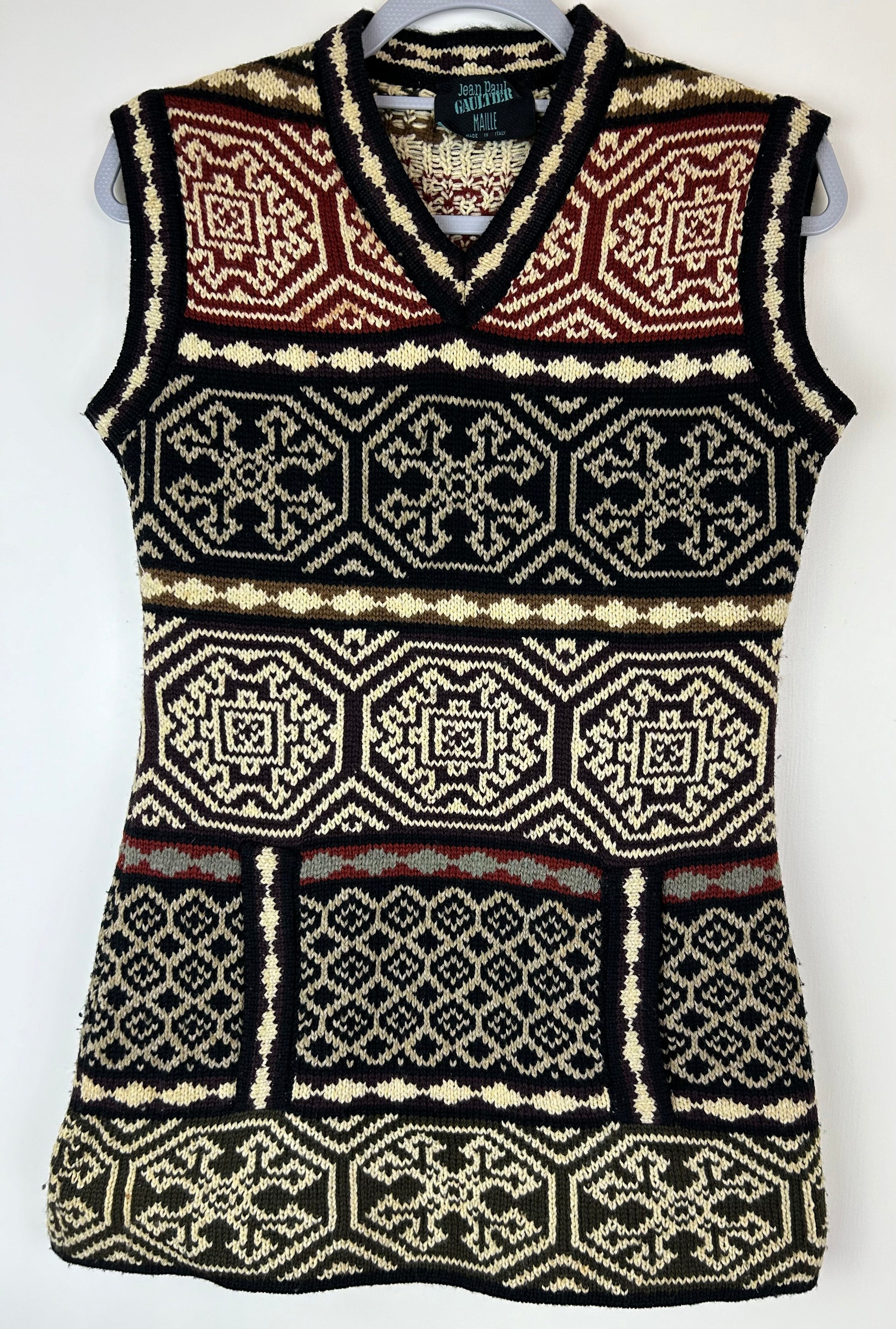 Multi Neutral Coloured Jean Paul Gaultier Sleeveless Woollen Tunic Dress. Large front pocket in middle of dress