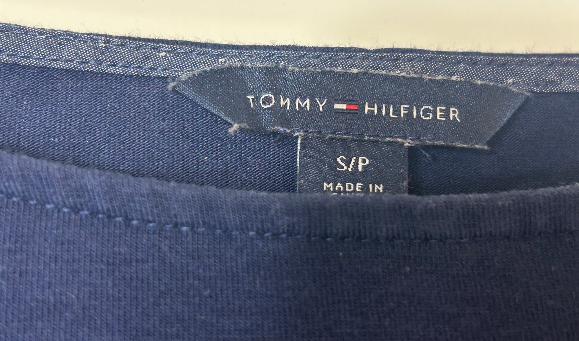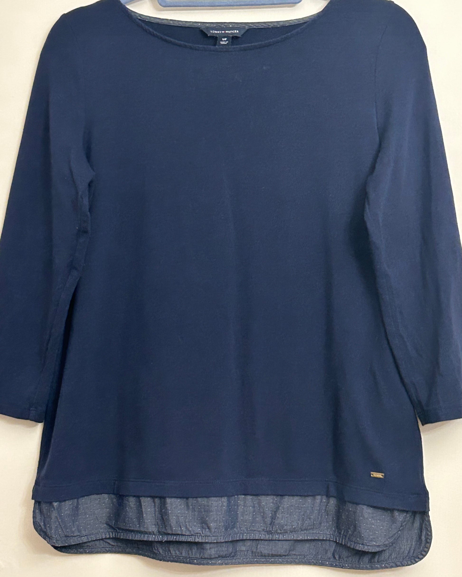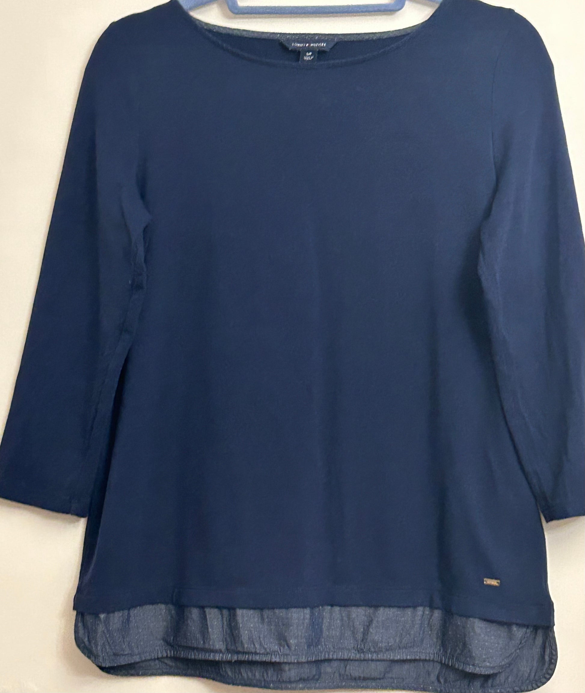 Navy Tommy Hilfiger Top with 3/4 length sleeves. Navy in colour with slightly lighter in colour cotton trim around bottom