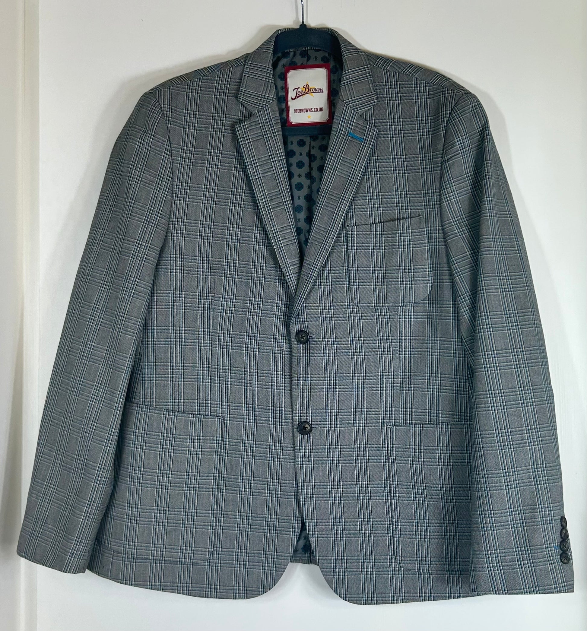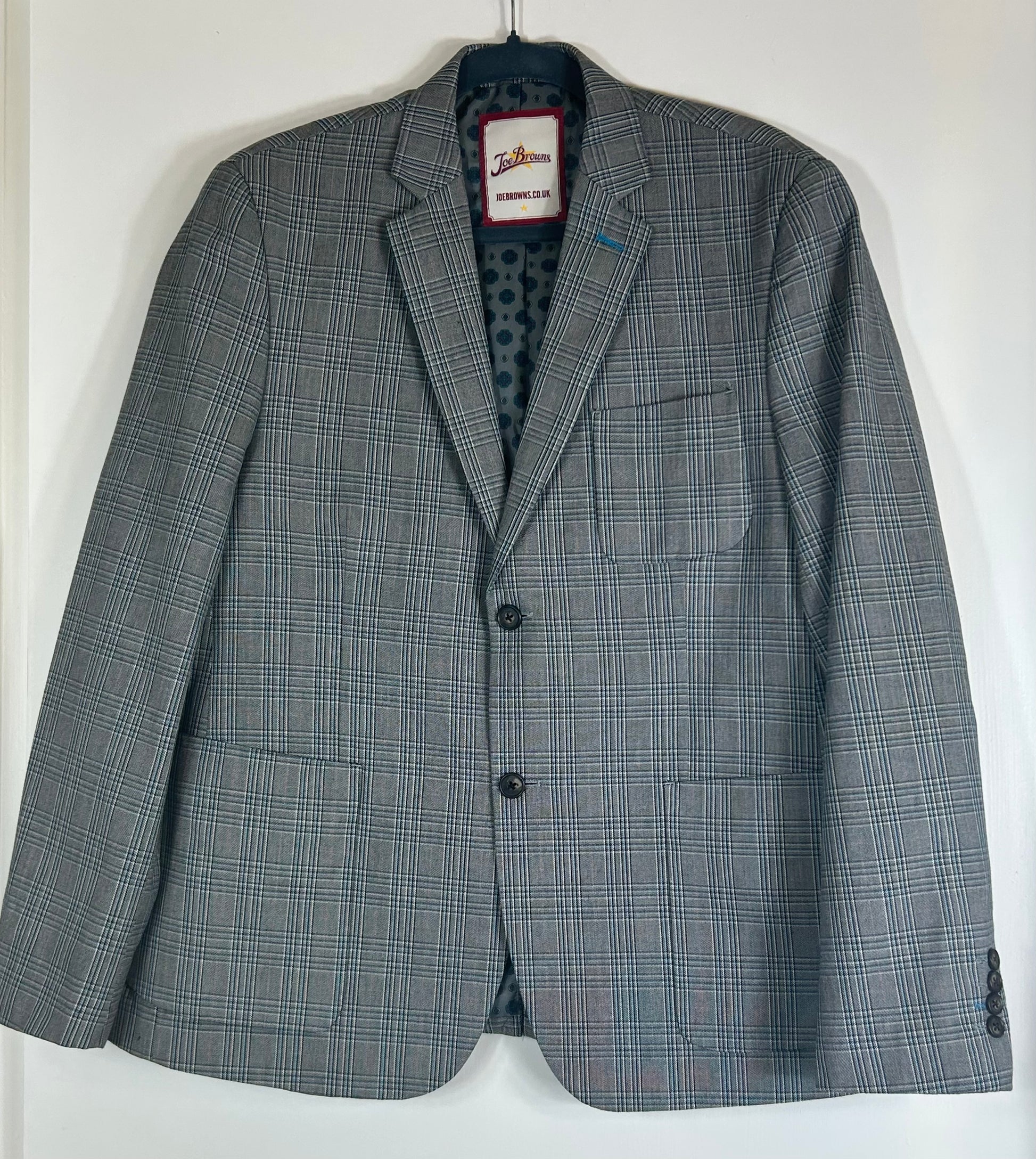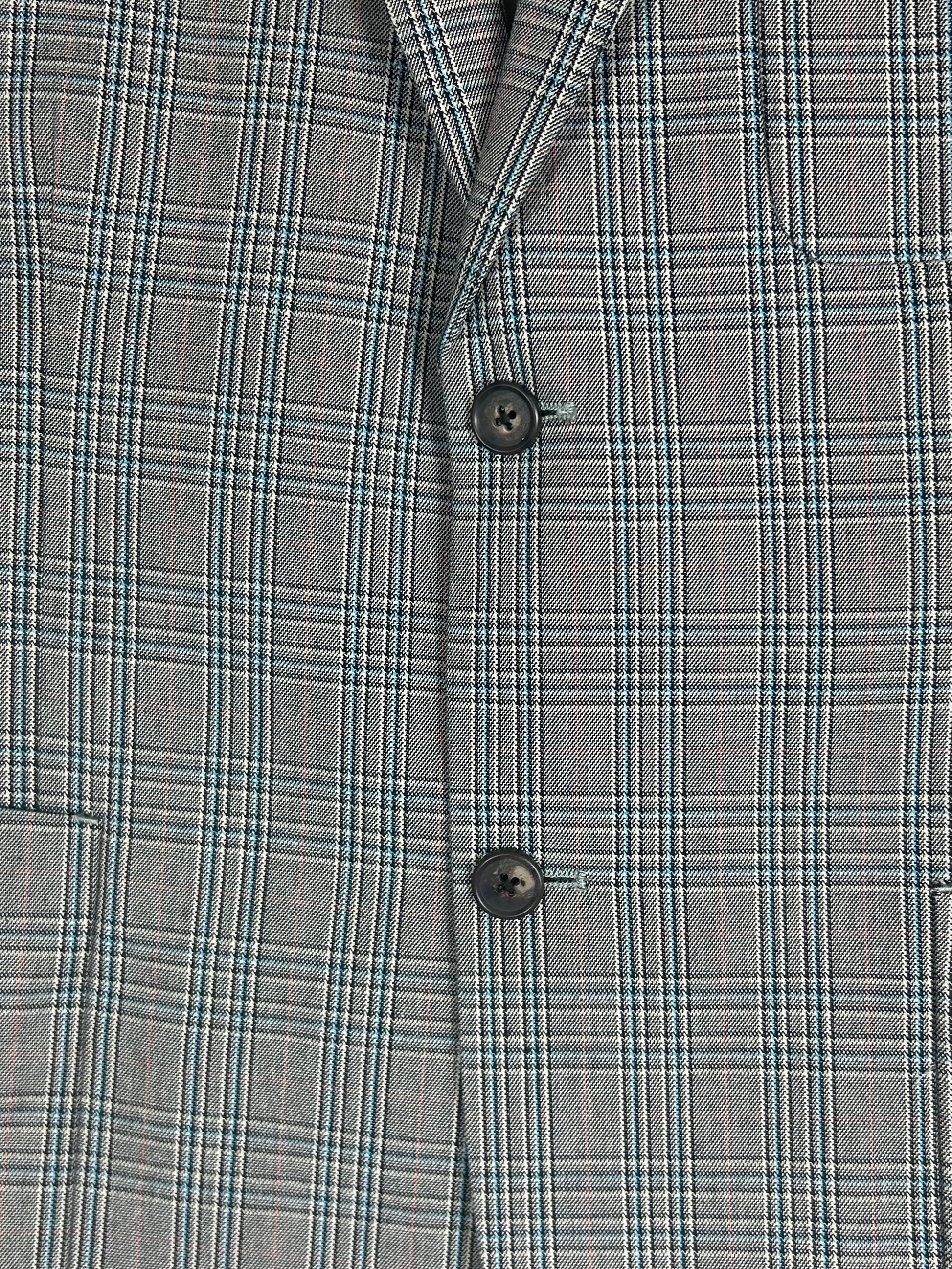 Pale Grey & Blue Checked Jacket. Two button front & three front pockets. Fully Lined