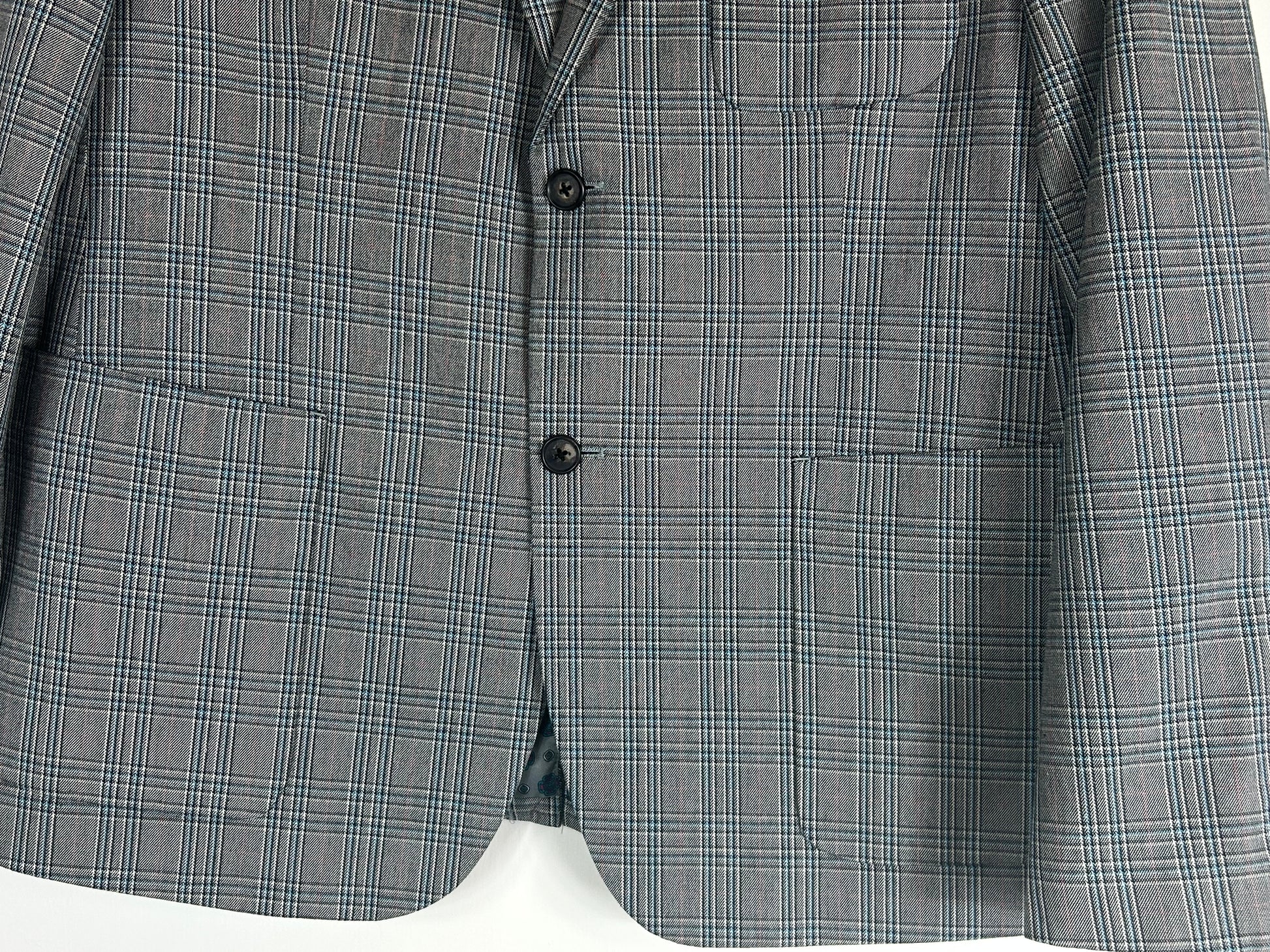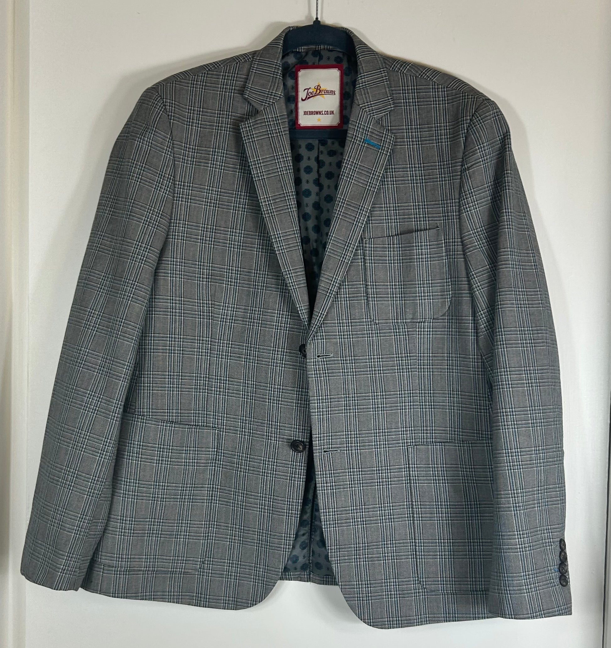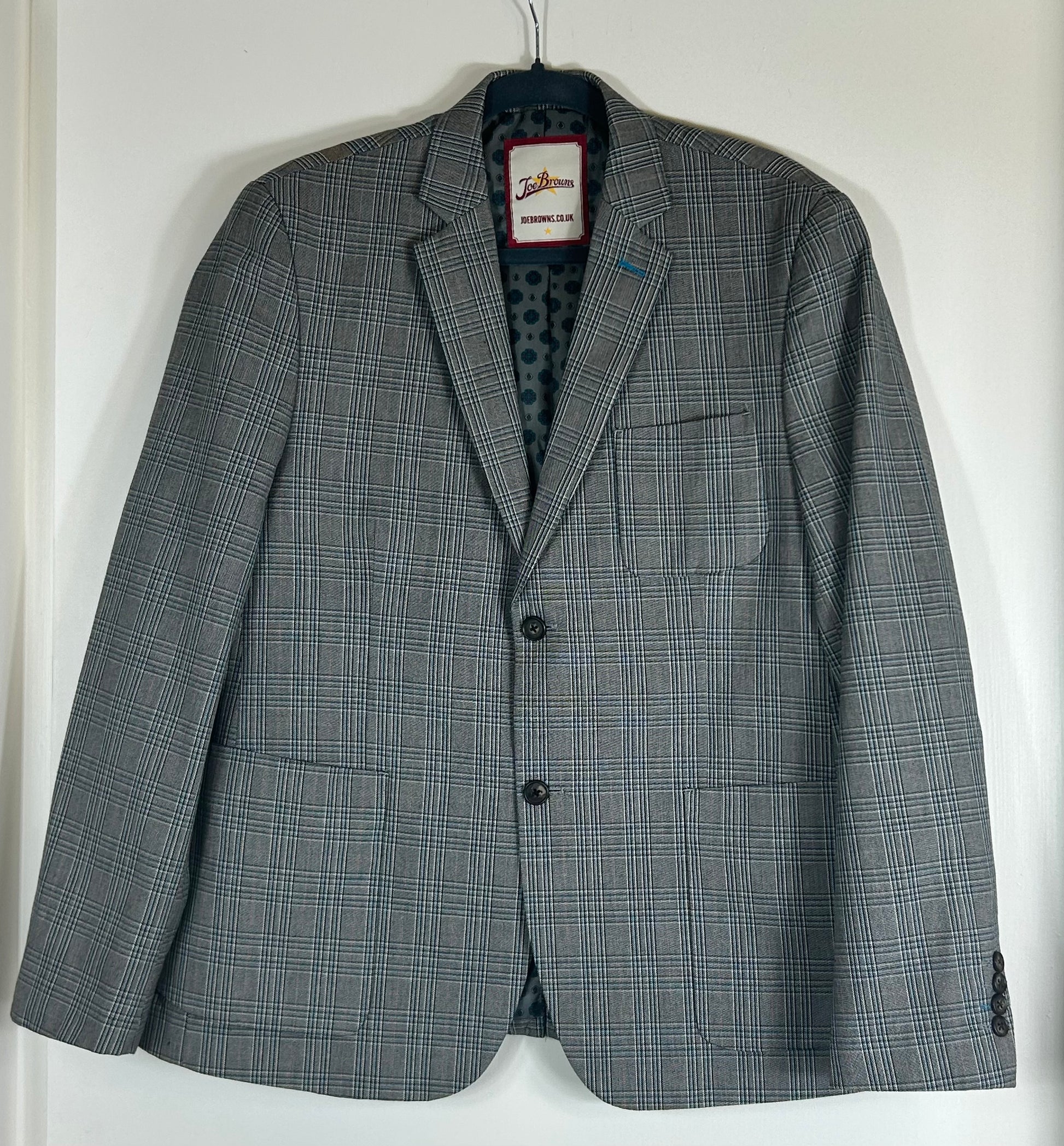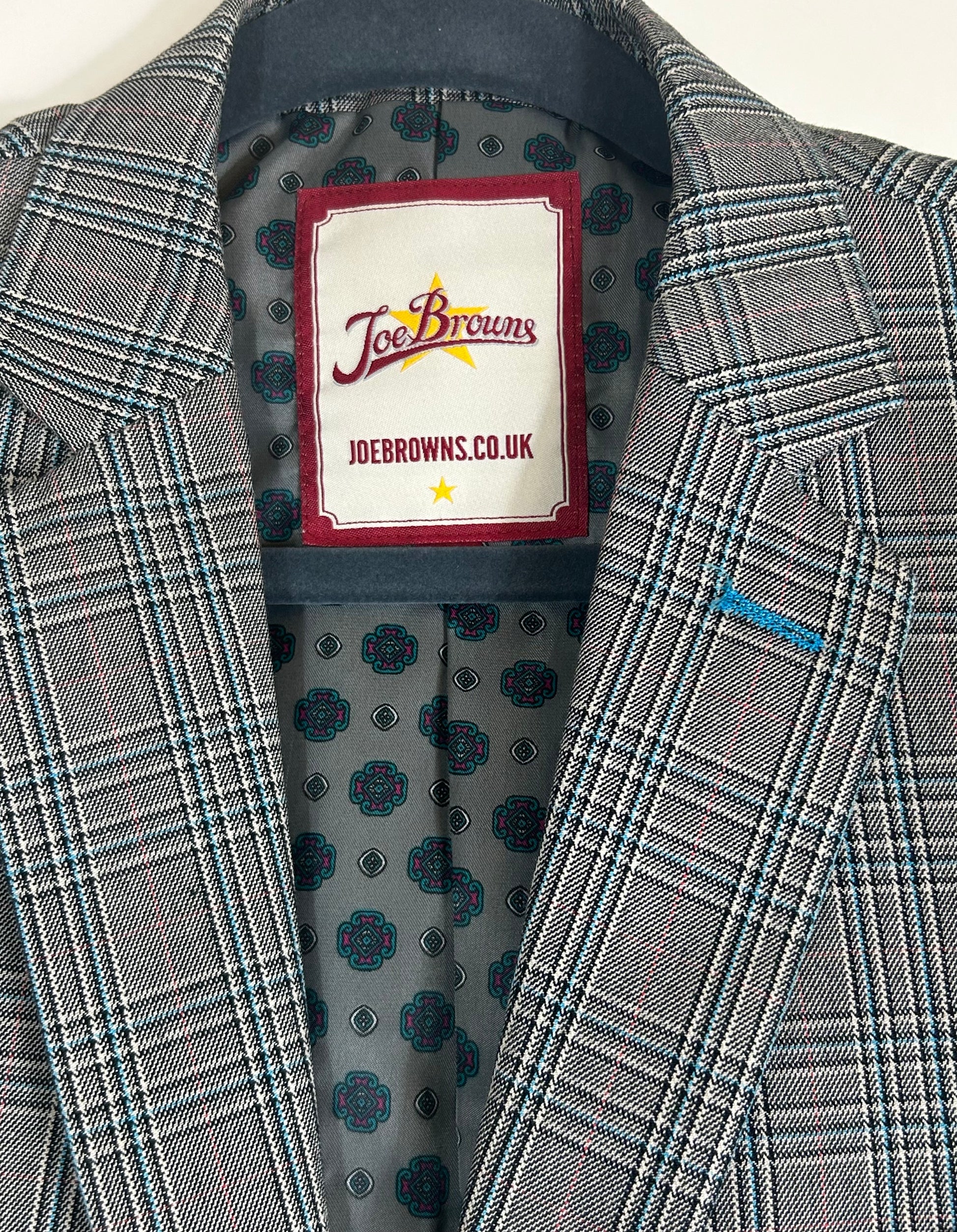 Pale Grey & Blue Checked Jacket. Two button front & three front pockets. Fully Lined