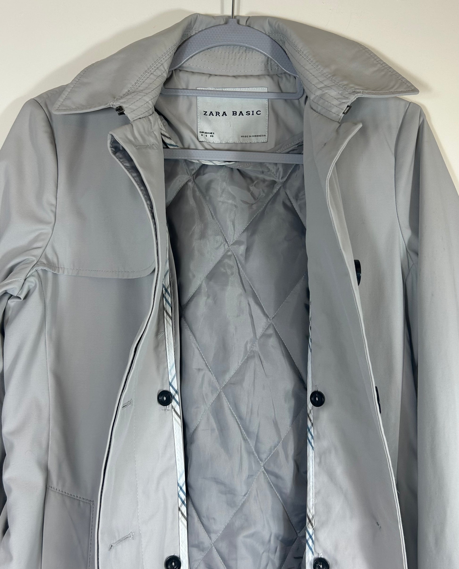 Pale Grey ZARA Basics Knee Length Trench Coat