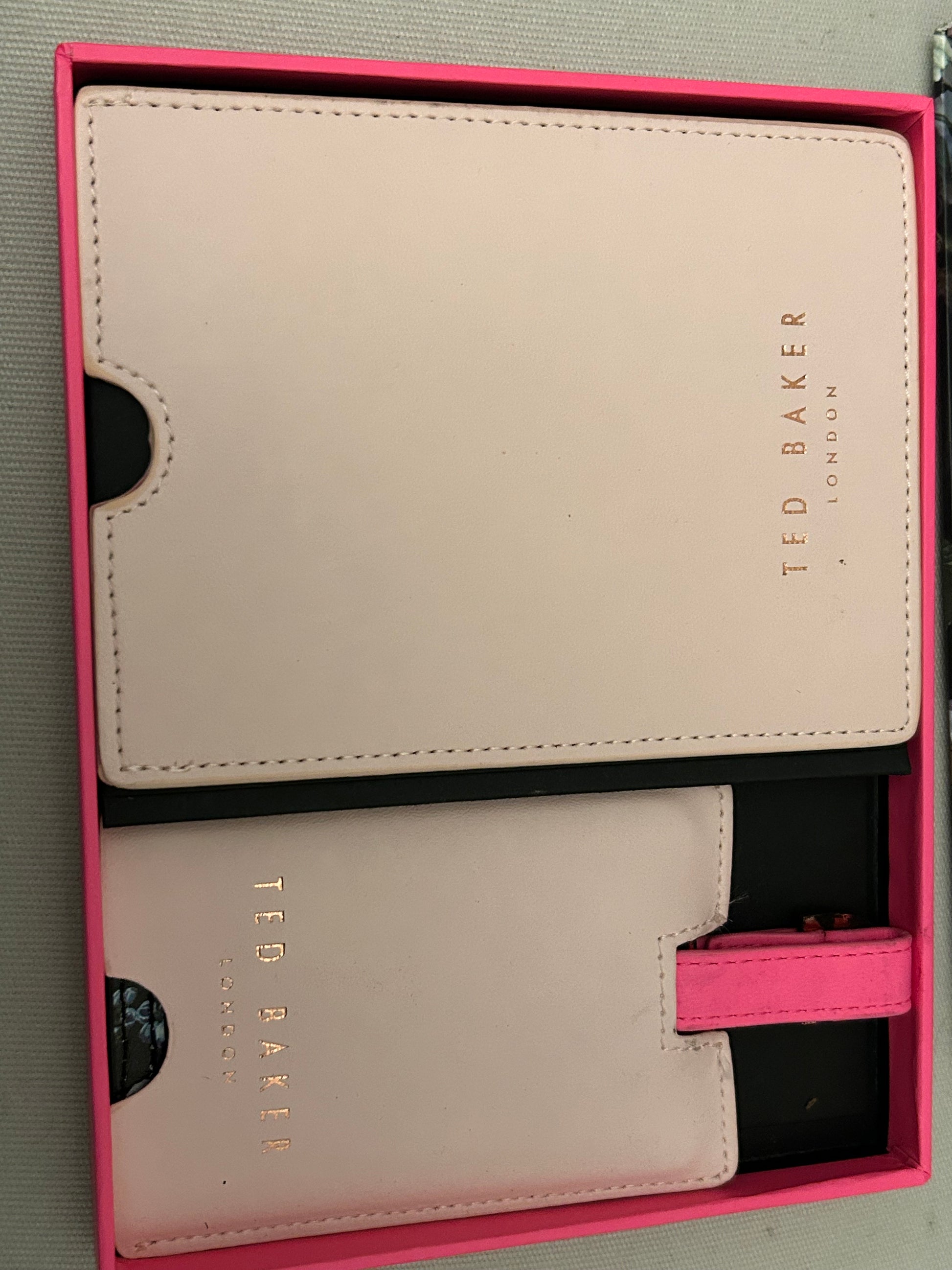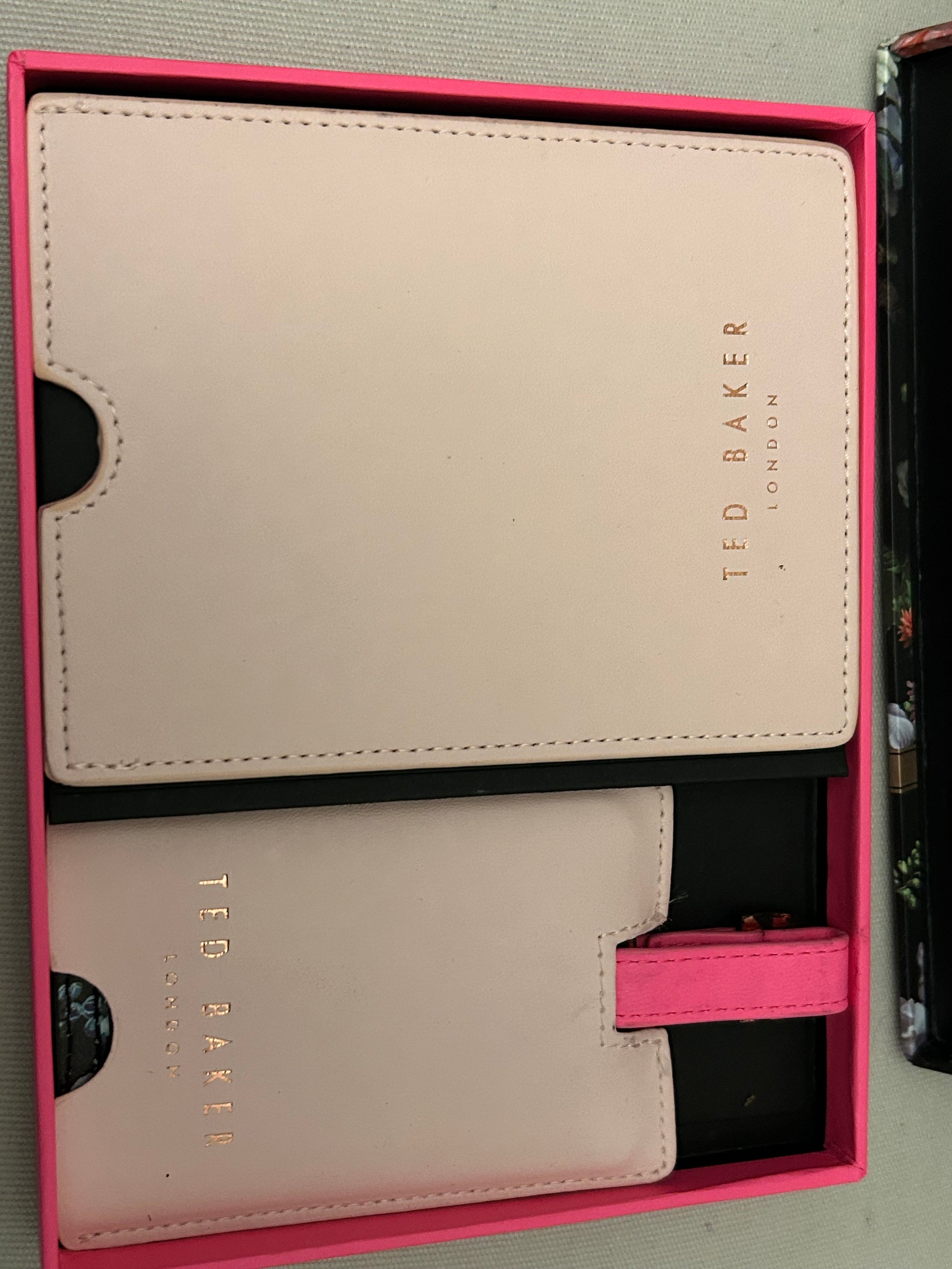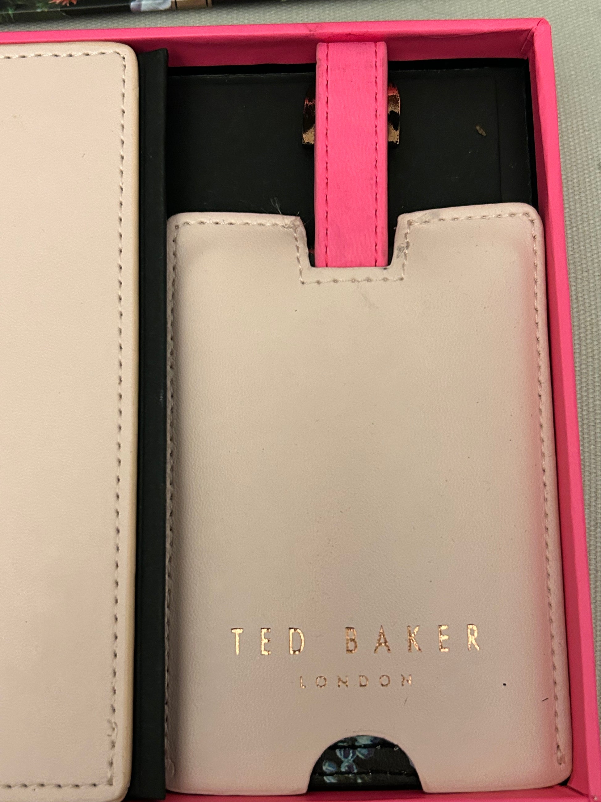 Pale Pink Ted Baker Travel Set. In box. Passport cover & Luggage Tag