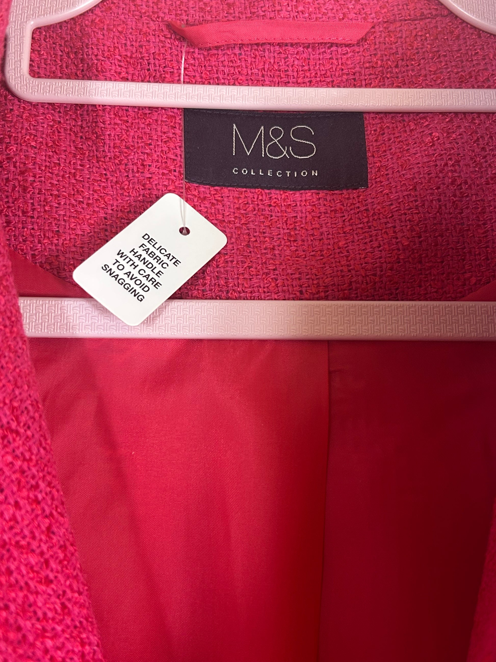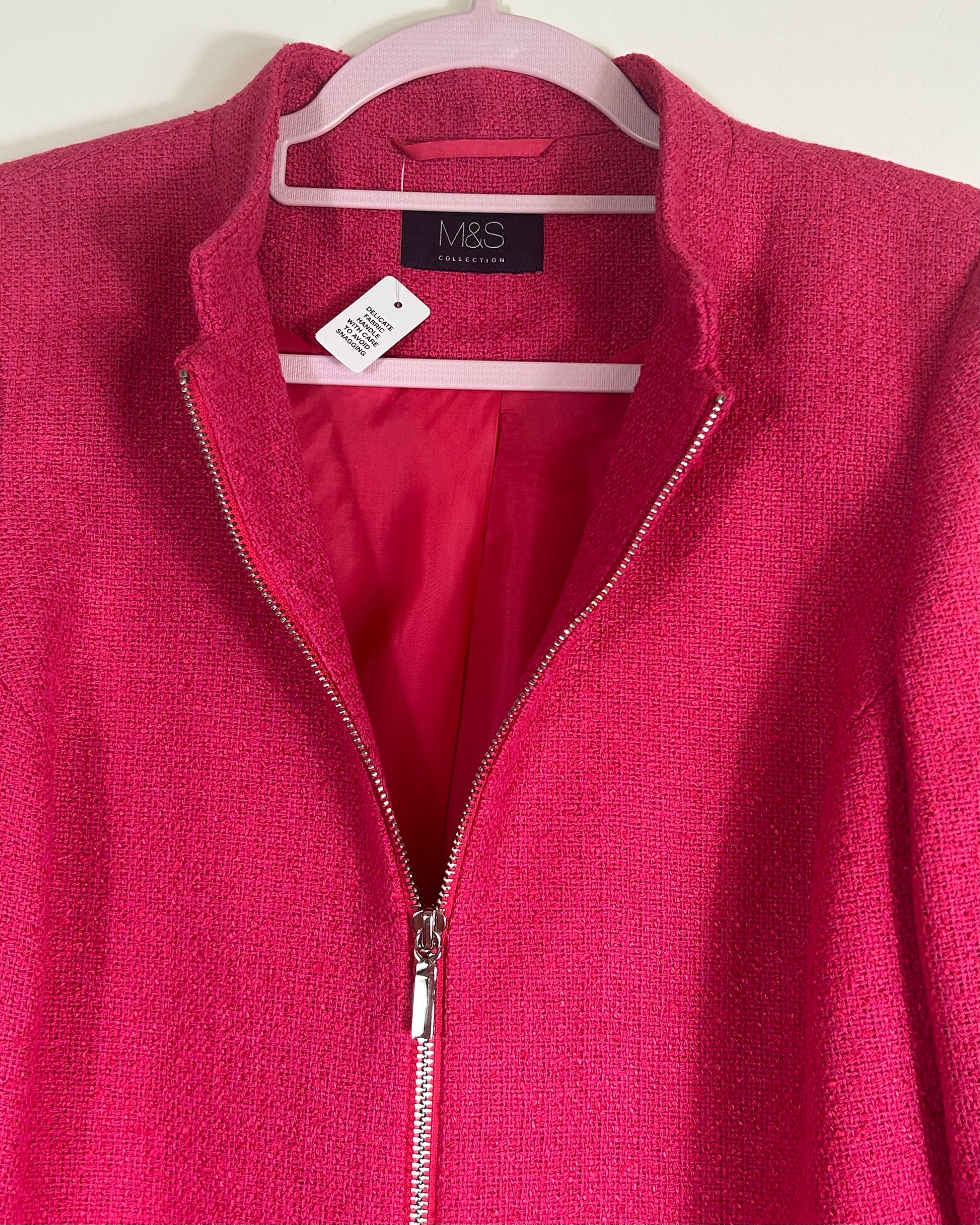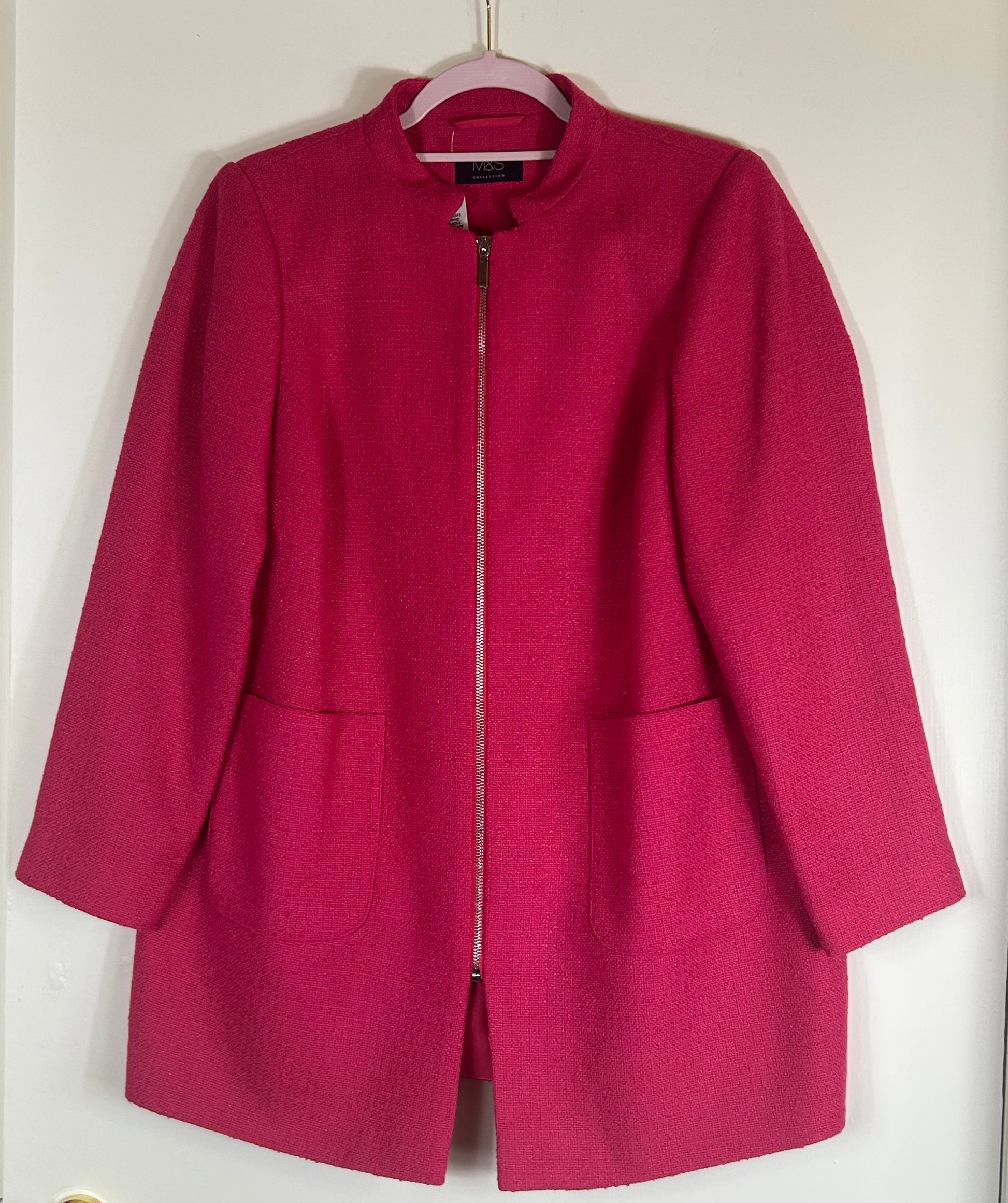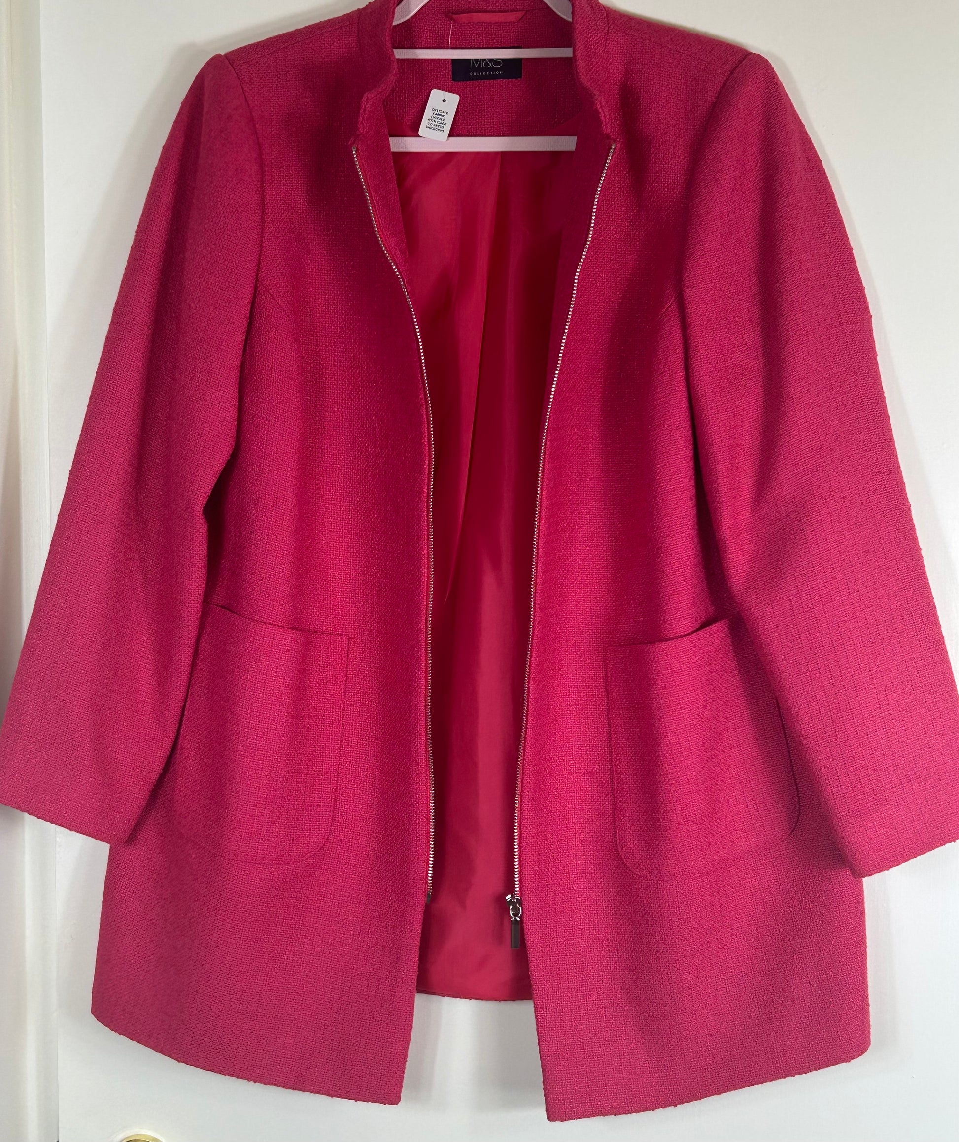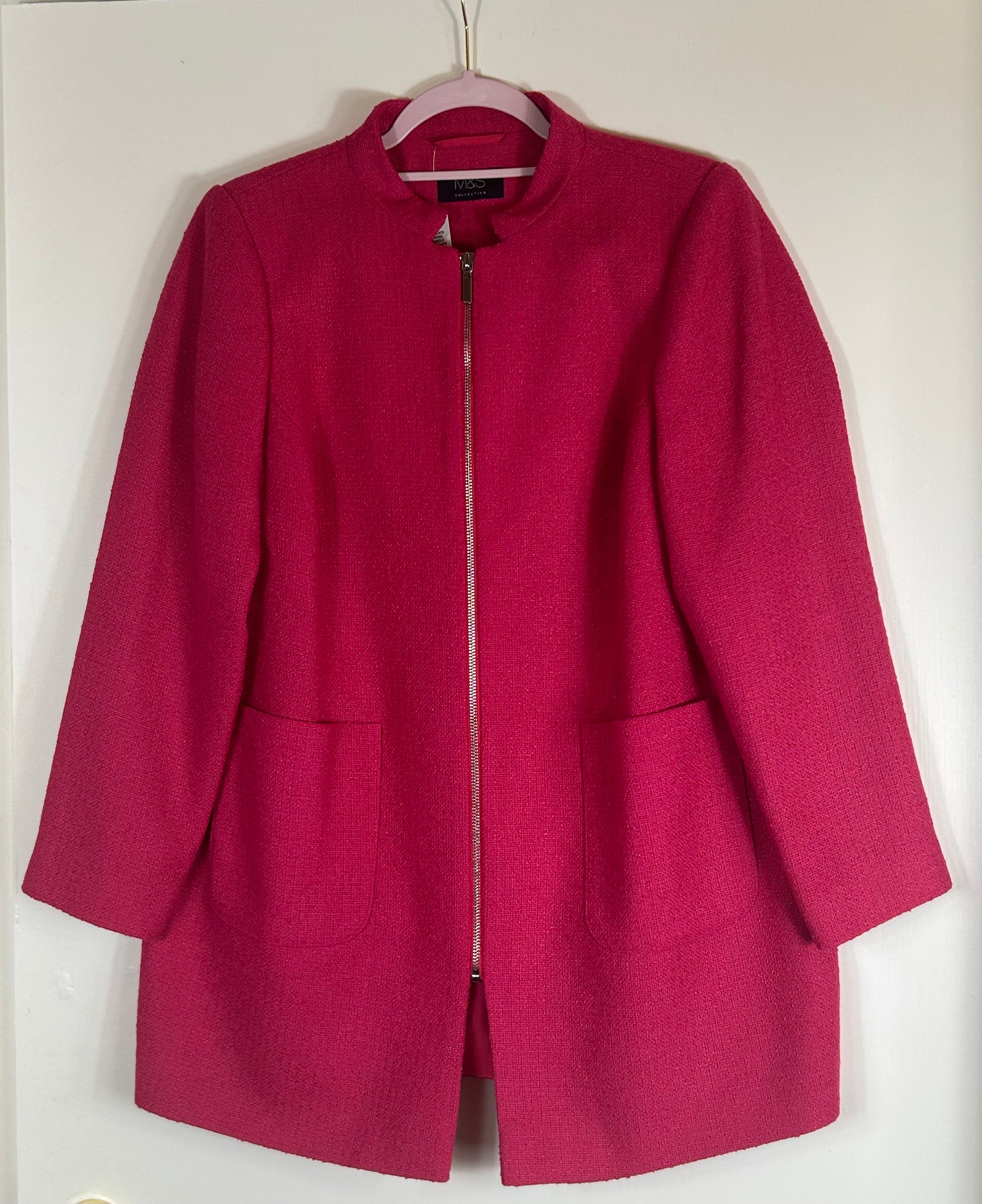 Pink M&S Jacket, 3/4 Length with Mandarin Collar with zip. Front fastening, Two front pockets