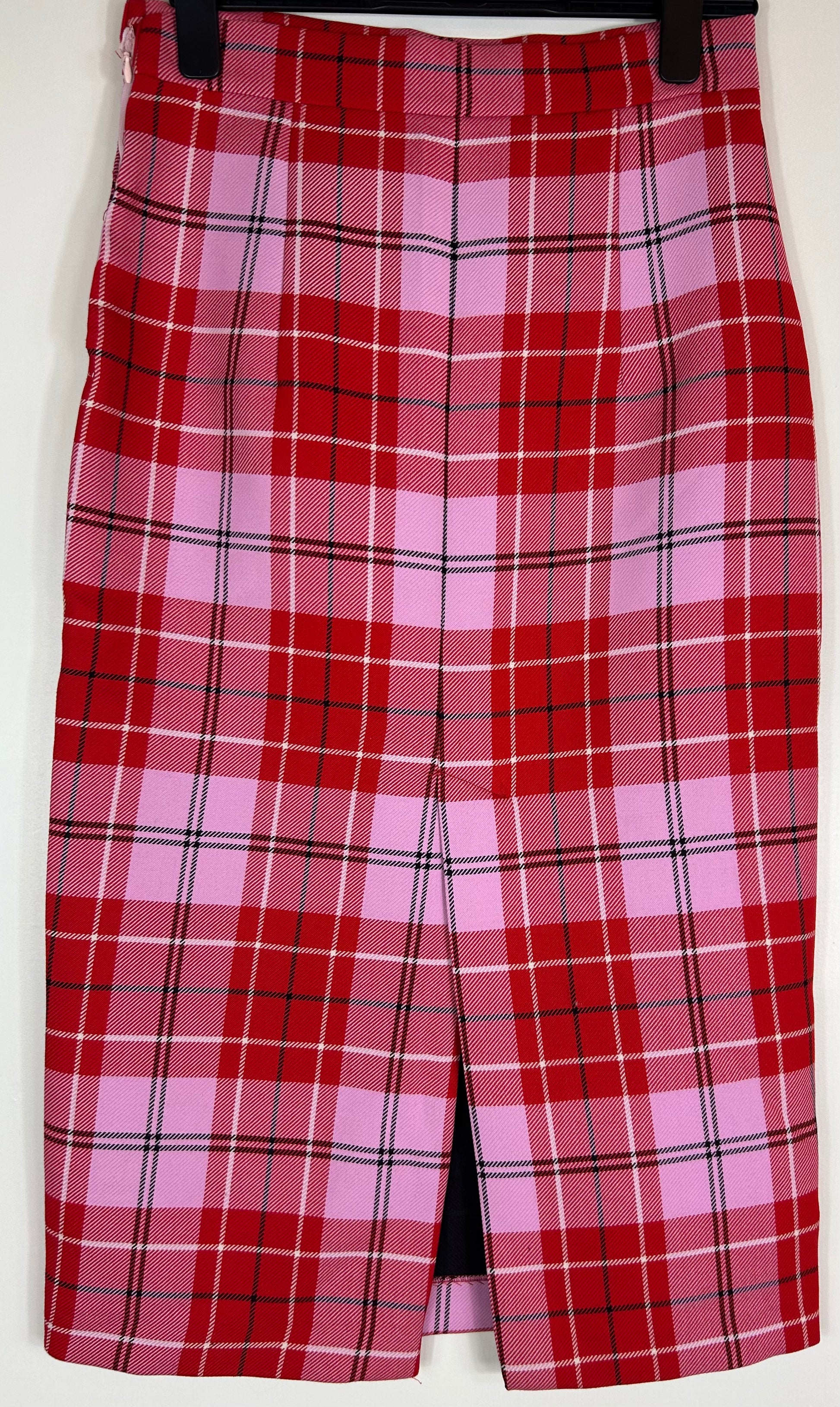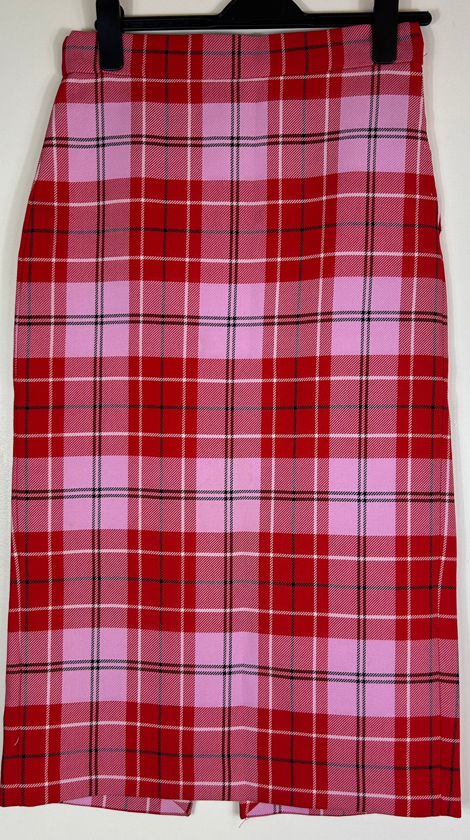 Pink & Red Checked ZARA Skirt.Calf length, side zip fastening, small split at back