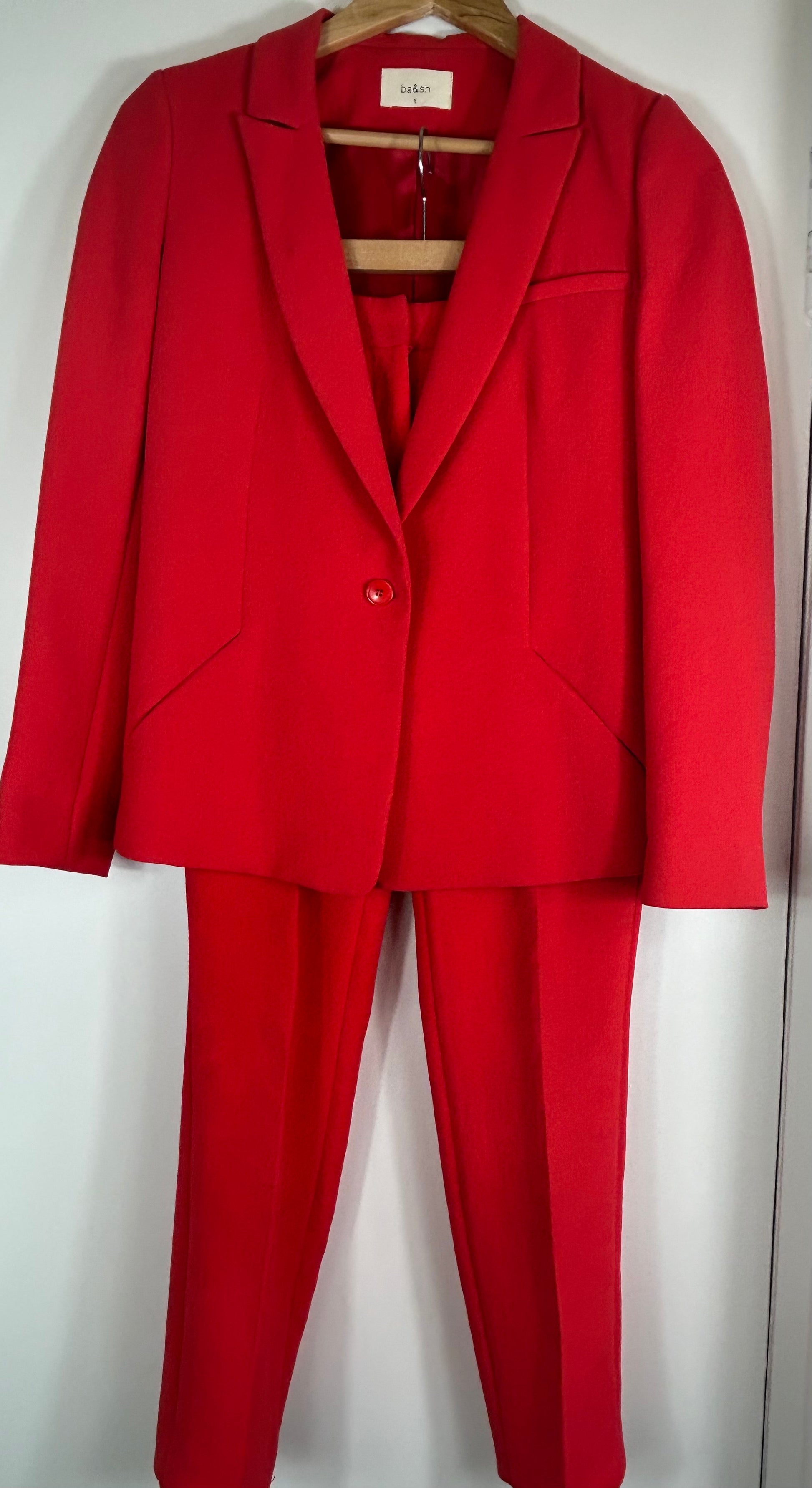 Ladies ba&sh Designer Red Trouser Suit.straight skinny leg towers with front zip fastening Two fake pockets at the back & side.