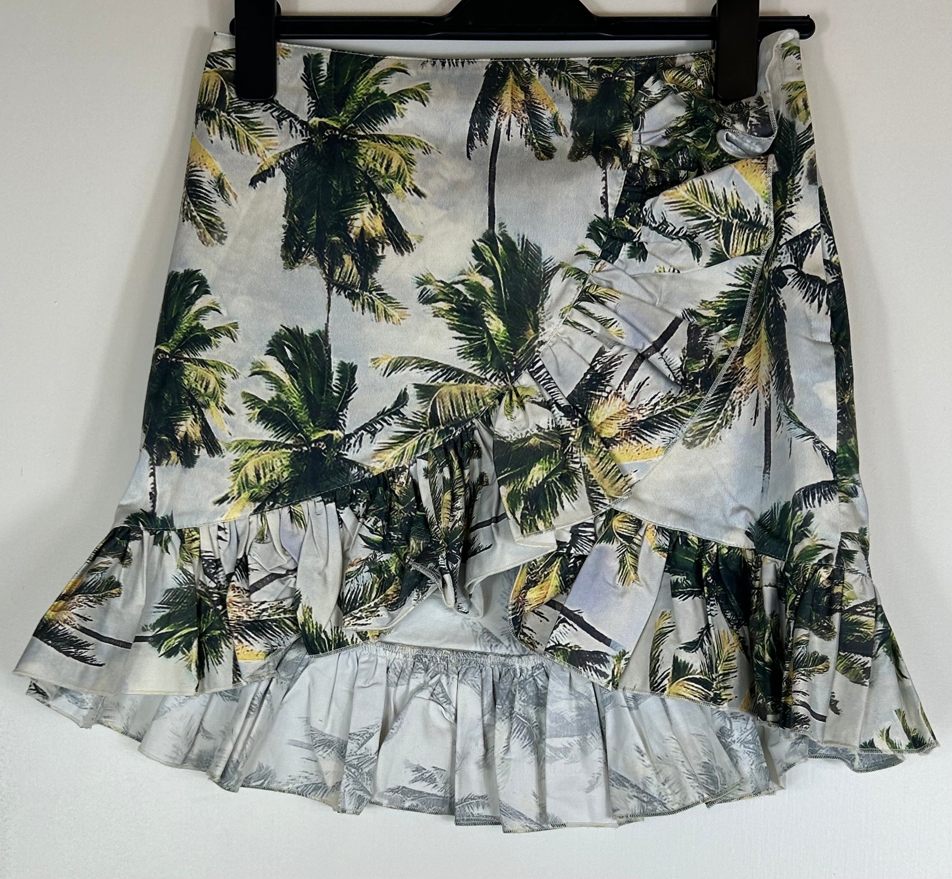 Ladies summer skirt. Palm Tree Pattern. Frills around the hemline.