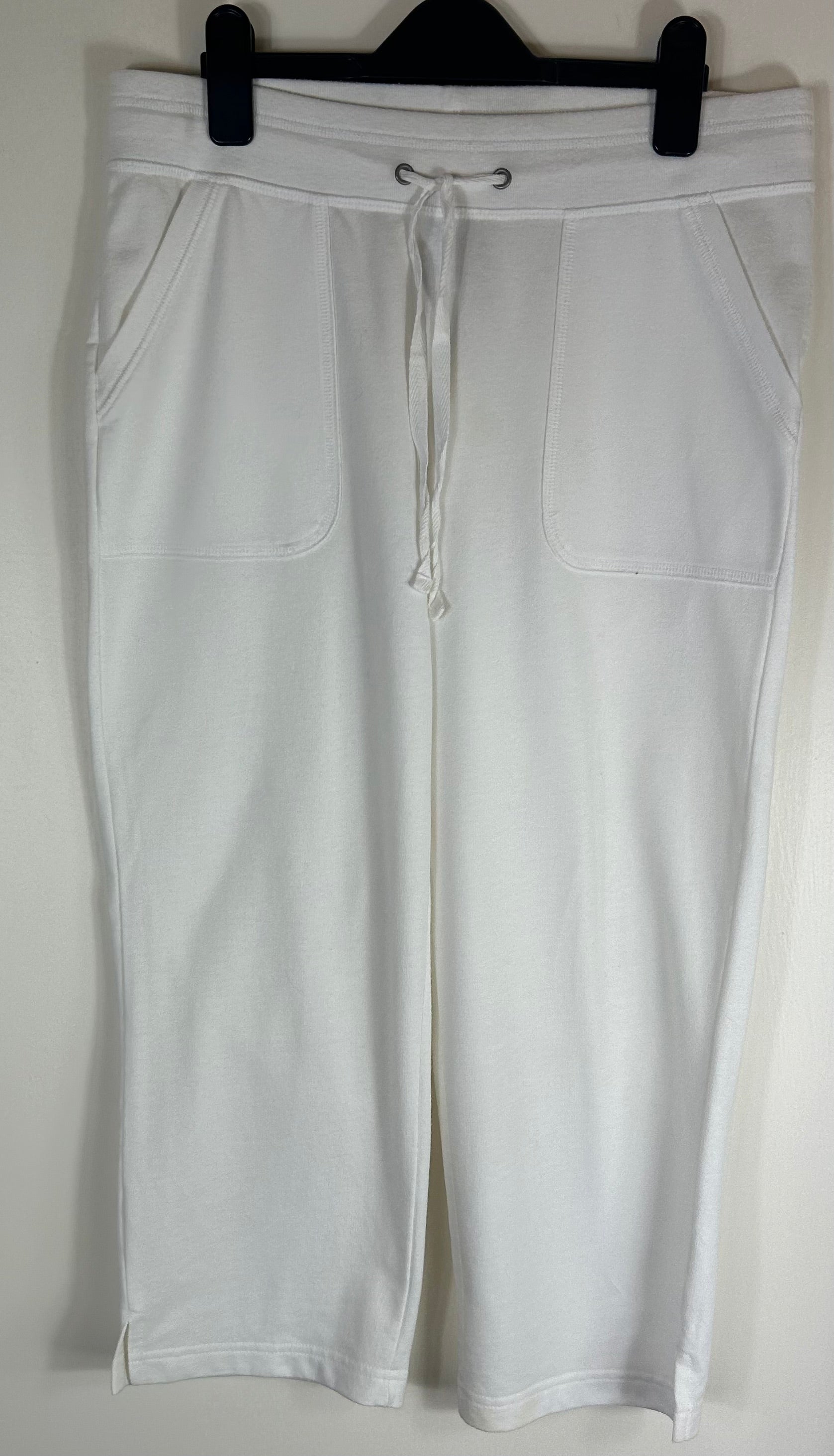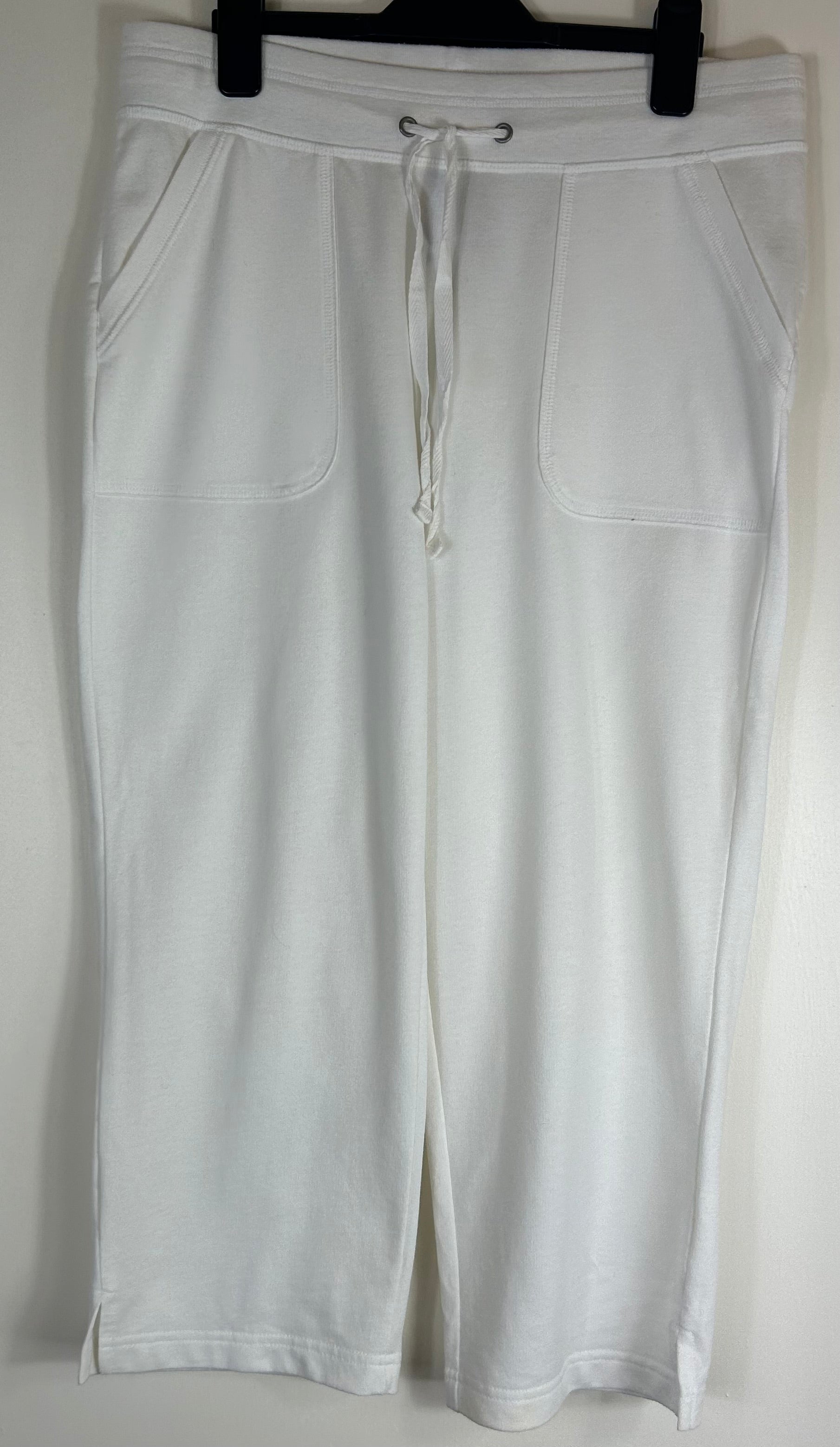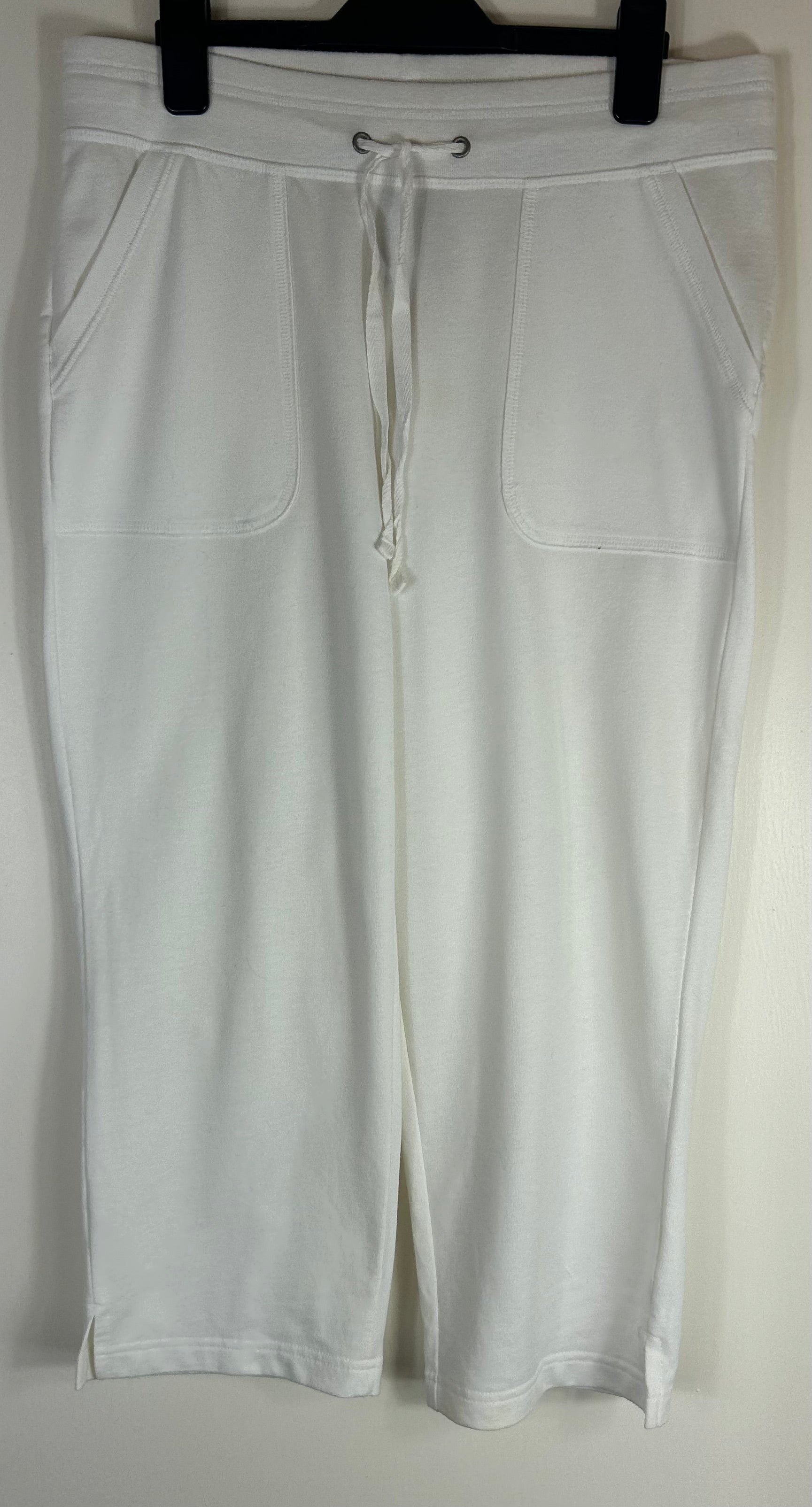 Ladies White STAG 3/4 Length soft cotton Trousers. Wide Legwith elasticated waist, tied waist and & Two front side pockets